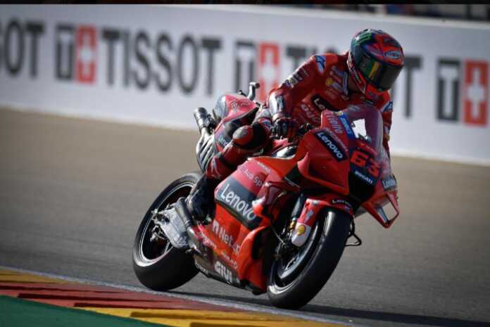 OtomotifZone.com – Bandung. Setelah memenangi pertarungan seru di seri Aragon, Spanyol, akhir pekan kemarin, (12/9), Francesco Bagnaia terus menempel ketat Fabio Quartararo di klasemen sementara perolehan nilai untuk tahta juara MotoGP 2021.