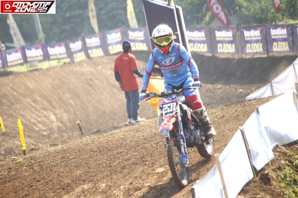Pemula paling berbahaya ini sudah membuat senior berpikir dua kali kalau main. Apalagi hanya kelas pemula. Tak bisa juara hanya terkendala motor trouble saja.