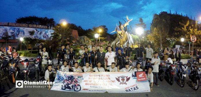 Sekitar 30 rider Honda All New Sonic 150R dari beberapa perwakilan komunitas, diantaranya dari Surabaya, Sidoarjo, Mojokerto dan Madiun foto bersama Al Ghazali, Brand Ambassador New Honda Sonic 150R.