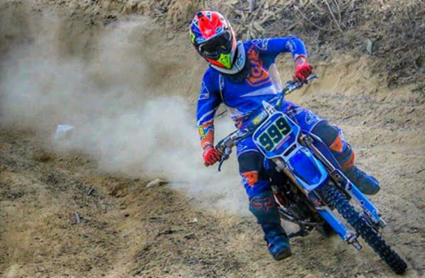 Begitu juga dengan crosser junior andalan Kalimantan Tengah, #999 Giancarlo Fiesta. Nama Gian, demikian biasa disapa cukup santer dan dikenal di arena grasstrack dan motocross di pulau Borneo. Kenapa tidak, pasalnya Gian sering merajai balap ‘garuk tanah’ dan naik podium.