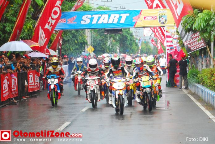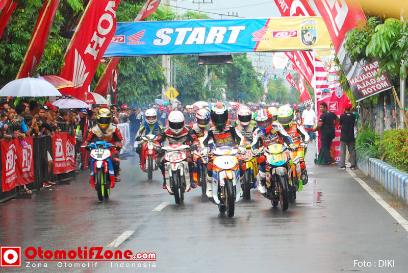 OtomotifZone.com – Madiun. Ajang Balap motor GM FKPPI FDR HONDA ROAD RACE & SUPERMOTO OPEN CHALLENGE tahun 2015 diawali di kota brem Madiun (15/3). Seri pembuka dari enam seri yang direncanakan di tahun 2015 digelar di Jl. Mastrip dan Jl. Abdul Rahmansaleh kota Madiun itu disesaki 203 starter dari 15 kelas yang dilombakan. Mengapa hanya segitu starternya, dan benarkah karena jadwal berbenturan dengan kejuaraan terbuka balap motor dikota lain. “ Memang benar hari ini ada dua gelaran balap motor yakni di Kota Bondowoso dan Madiun ini “ kata Moy Arifin selaku pimpinan lomba.