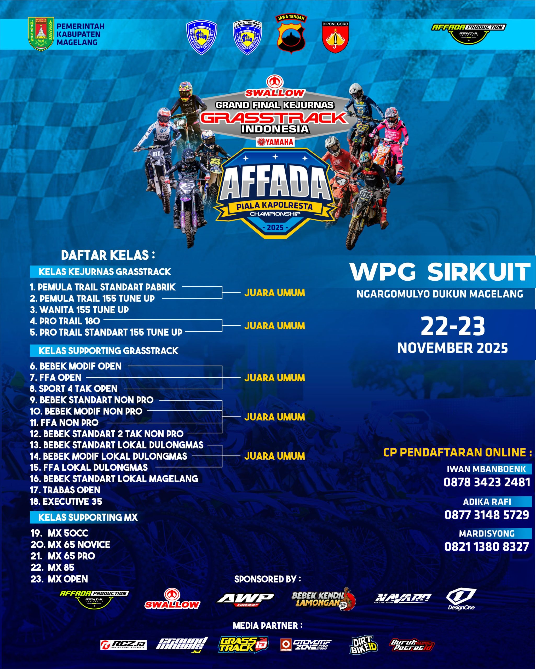 OtomotifZone.com – Magelang. Langsung ke tempat lokasi melihat sirkuit baru lagi di Magelang kemarin, OZ survey tempat dimana gelaran puncak Kejurnas Grasstrack hadir di sirkuit Wahyu Persada Group – WPG, Ngandong, Ngargomulyo, Dukun, Magelang. Rekom sudah keluar dan sudah bisa di pastikan agenda grand final tersebut di tanggal 22-23 November 2025.
