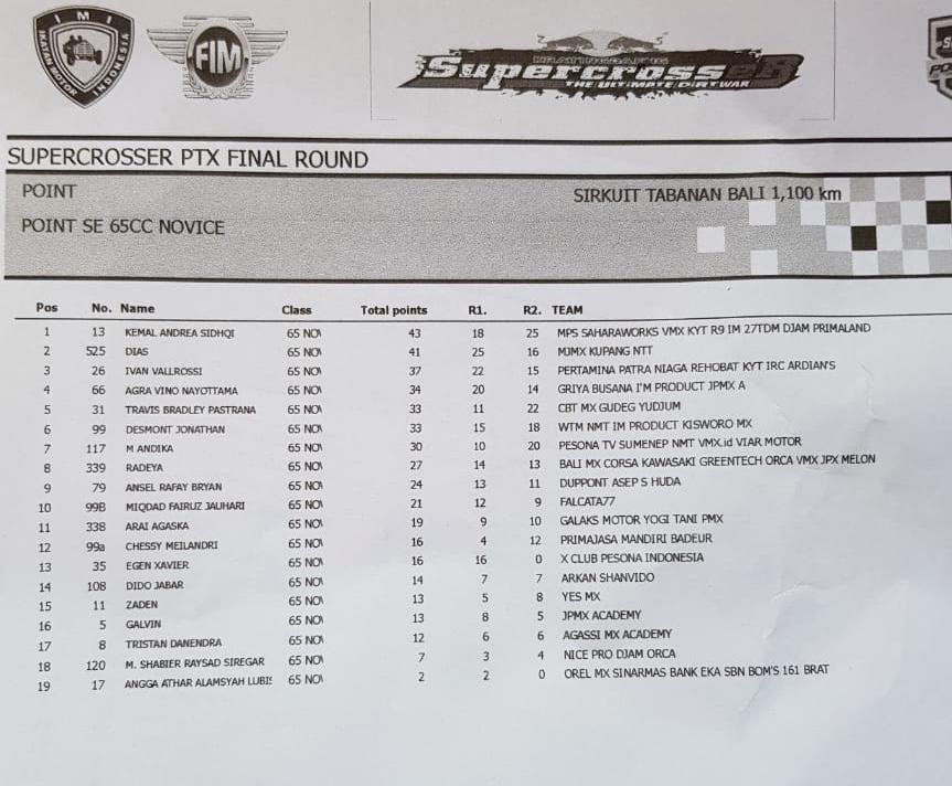 OtomotifZone.com – Bali. Pembalap MPS Sharawork R9 VMX IM 27TDM KYT DJAM Primaland, Kemal Andrea sukses menjadi juara di kelas SE 65 Novice Kejurnas Powertrack 2018 yang berlangsung di Sirkuit Bali MX Motocross Park Tengkudak Penebel, Tabanan Bali, Sabtu (20/10). Selain mengamankan juara, Kemal juga sukses menduduki klasemen akhir di posisi kedua.