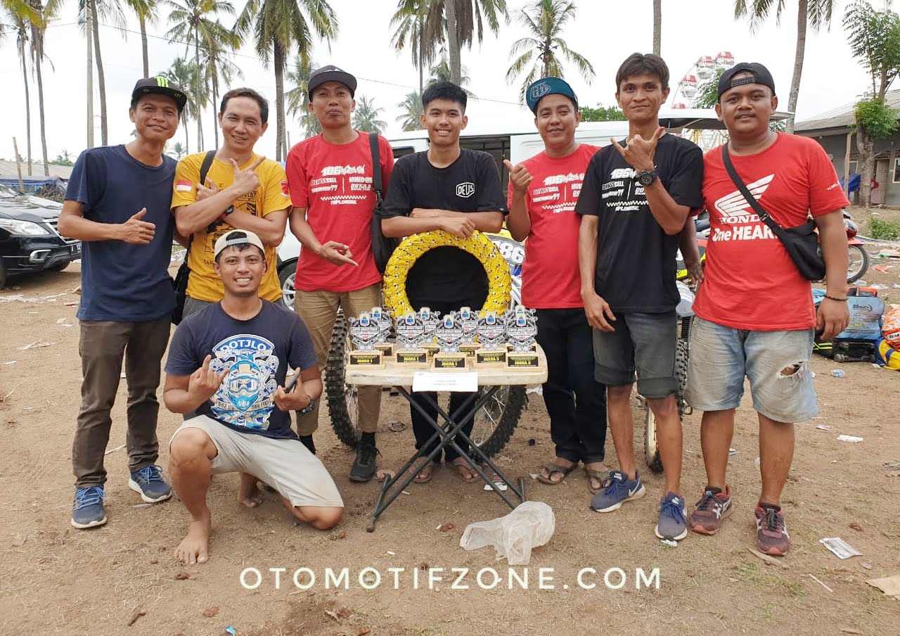 OtomotifZone.com – Banten. Gelaran Kejuaraan Grasstrack Hut Kabupaten Lebak Ke 191 Open 2019 yang digelar di Sirkuit Bonlap, Bayah, Lebak, Banten berhasil digelar kemarin (14-15/12). Dan team asal Tangerang, Banten yaitu Dewws Cell Dotjlo Yan’s Mocin77 Racing team berhasil meraih double winner dengan raihan 2 juara umum sekaligus lewat Jefri Bule dan Aldy SW.