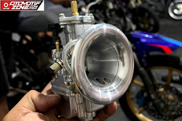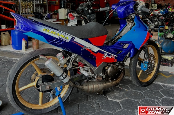 “Coba-coba untuk spek 125Z team Elhana karbu UMA 28, Magnit yz 85 dan kompresi lebih tinggi dari sebelumnya. Sekarang saya bikin 15,3. Sama riset rasio mas, mudah-mudahan berhasil hitungannya untuk sirkuit Mijen,” kata mekanik yang punya grub mancing ini.