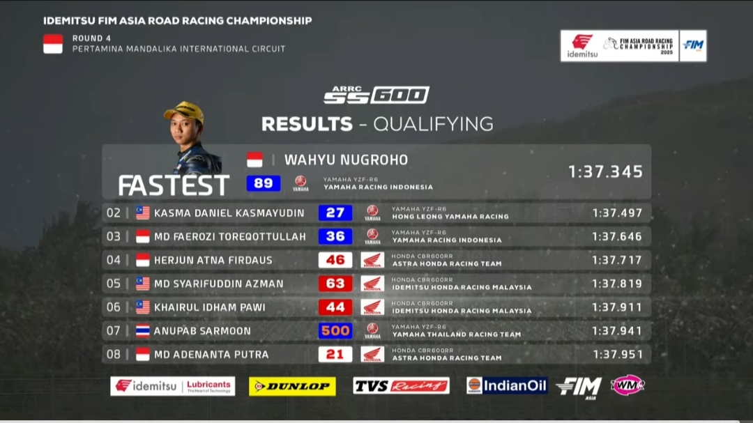 OtomotifZone.com – Lombok. Pencapaian yang cukup istimewa bagi Wahyu Nugroho di Seri 4 Asia Road Racing Championship sirkuit Mandalika, Lombok, Nusa Tenggara Barat 29-31 Agustus 2025.