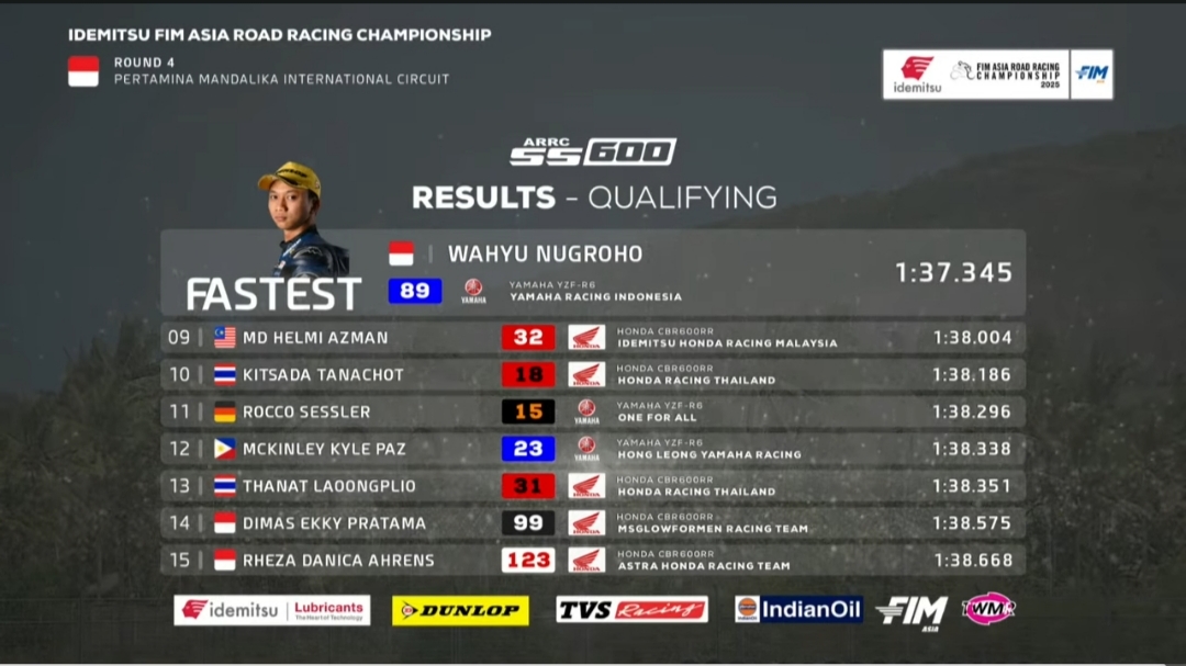 Dan terjadilah pada sesi Kualifikasi. Sempat ada di posisi bawah menjelang lap akhir tiba-tiba catatan Wahyu meroket ke tempat terdepan. Menggeser beberapa pembalap top yang sudah menguasai beberapa seri balap ARRC. Unggul 0.300s langsung membuat motor bernomor 89 sebagai list pembalap tercepat.