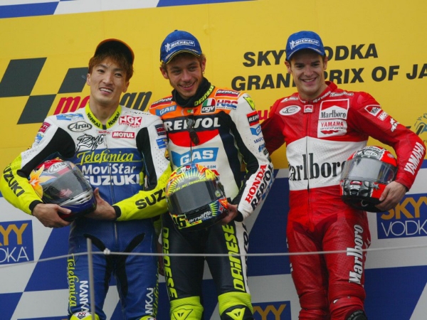 Di Suzuka lah sejarah tersebut di mulai. Sayang, Race hujan. Pemenang saat itu Valentino Rossi bersama team Repsol Honda, disusul wildcard Jepang Akira Ryo bersama Telefonica Movistars Suzuki. Carlos Checa dari team Marlboro Yamaha Factory di tempat ketiga.