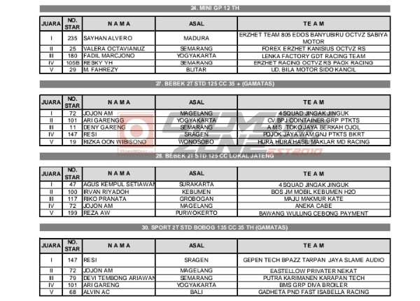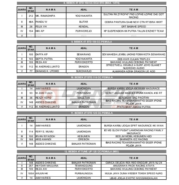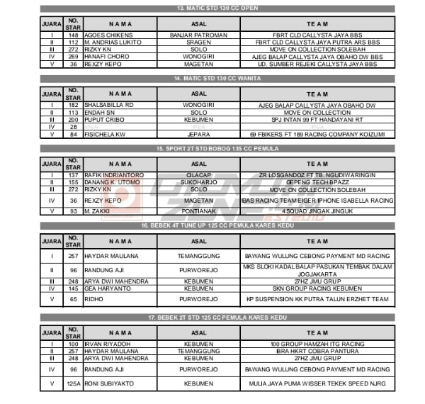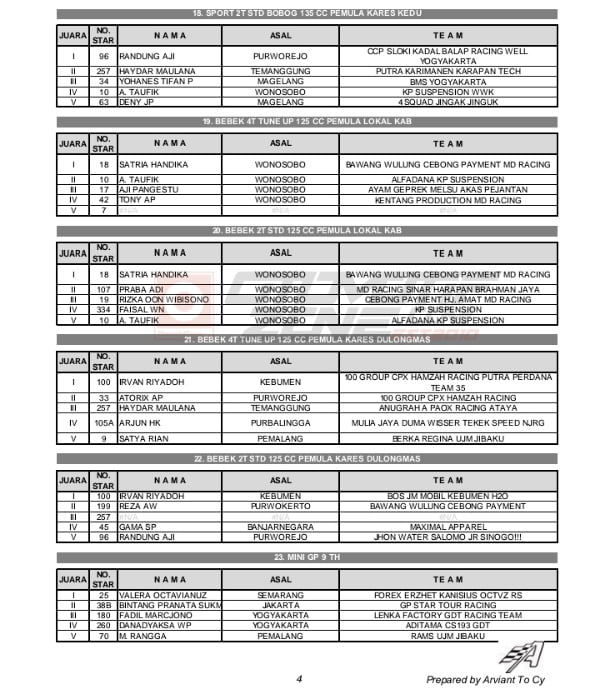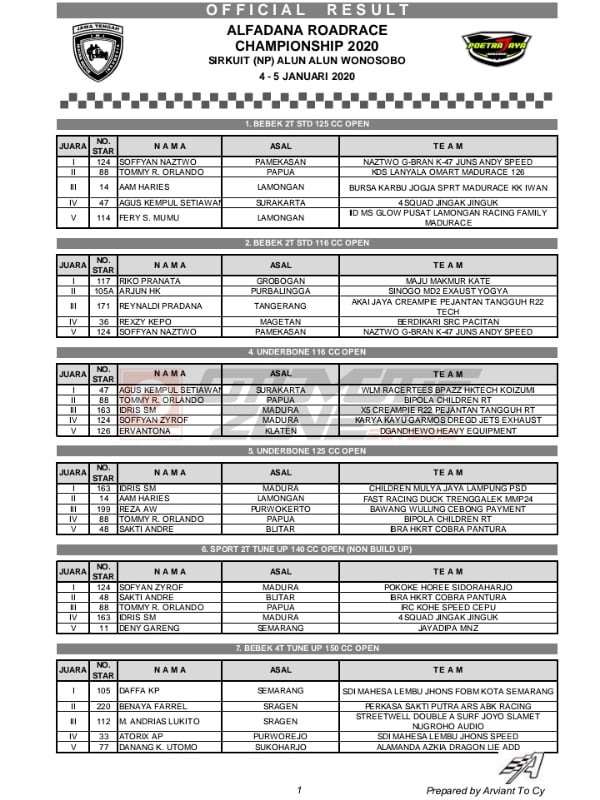 Race ResultsRacing Roda 2Road Race Hasil Alfadana Road Race Wonosobo 2020 Penulis Hafid Hapid - 6 Januari 2020 0 428 FacebookXPinterestWhatsApp OtomotifZone.com-Wonosobo. Berikut hasil lengkap Alfadana Road Race sirkuit Alun-alun Wonosobo 4-5 Januari 2020. Penulis : Hafid | Foto : Hafid