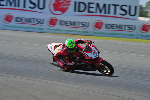 ia melesat paling cepat dengan catatan waktu 1’53.849s. Sebelumnya, ia sempat khawatir dengan motor CBR250RR andalannya, namun catatan waktunya terus membaik.