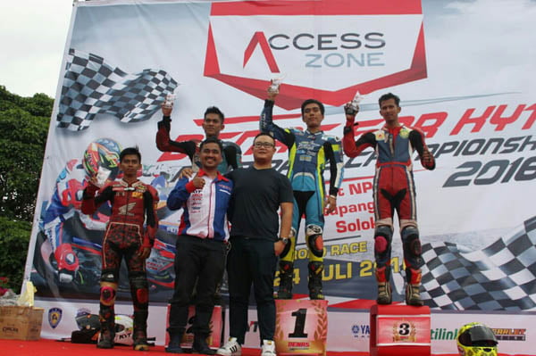 OtomotifZone.com – Solok. Simak hasil balap yang digelar Denas Racing Management di GOR Batu Tupang sepanjang Minggu (24/7). Inilah nama pemenang dalam event Accsess Speed Denas FDR KYT Open Road Race Championship 2016.