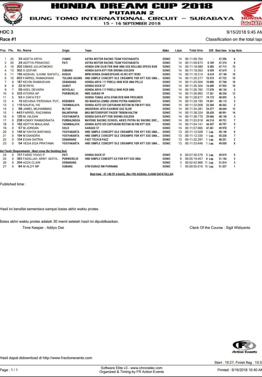 Berikut hasil balap HDC 2018 seri III Surabaya.
