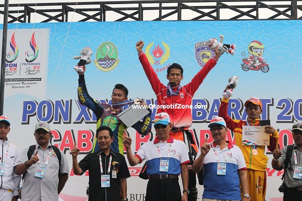OtomotifZone.com – Tasikmalaya. Rafid Topan Sucipto menjadi bintang di sirkuit Bukit Peusar, Tasikmalaya, hari Minggu (25/09). Rafid Topan, Pembalap asal DKI Jakarta berhasil juara pertama di Cabor Balap Motor PON XIX JABAR 2016 kelas 150cc perorangan.