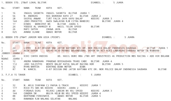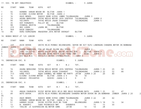 Racing Roda 2GrasstrackMotocrossRace Results Hasil Boss Mild Grasstrack Dan Motocross Blitar 2019 Penulis Hafid Hapid - 24 Februari 2019 0 4778 FacebookXPinterestWhatsApp OtomotifZone.com-Blitar. Berikut hasil event Boss Mild Grasstrack & Motocross sirkuit Alas Maliran, Ponggok, Blitar, Jawa Timur 24 Februari 2019. Penulis : Hafid | Foto : Hafid