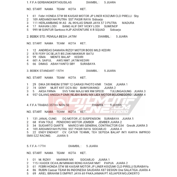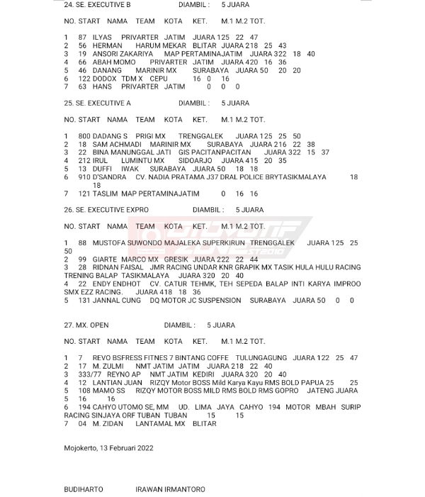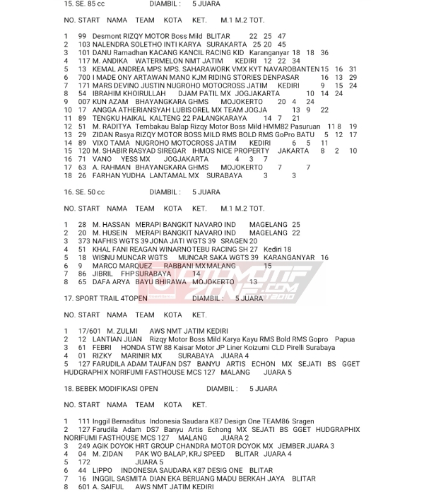 OtomotifZone.com-Mojokerto. Berikut Hasil Danlantamal V Cup Motocross Grasstrack sirkuit Gajah Mada Lamtamal Mojokerto 12-13 Februari 2022. Event perdana di sirkuit baru ini walau di gempur panas menyengat dan hujan menjelang sore selesai dengan baik. Para pembalap siap menunggu event lagi di trek musim terang tahun ini.