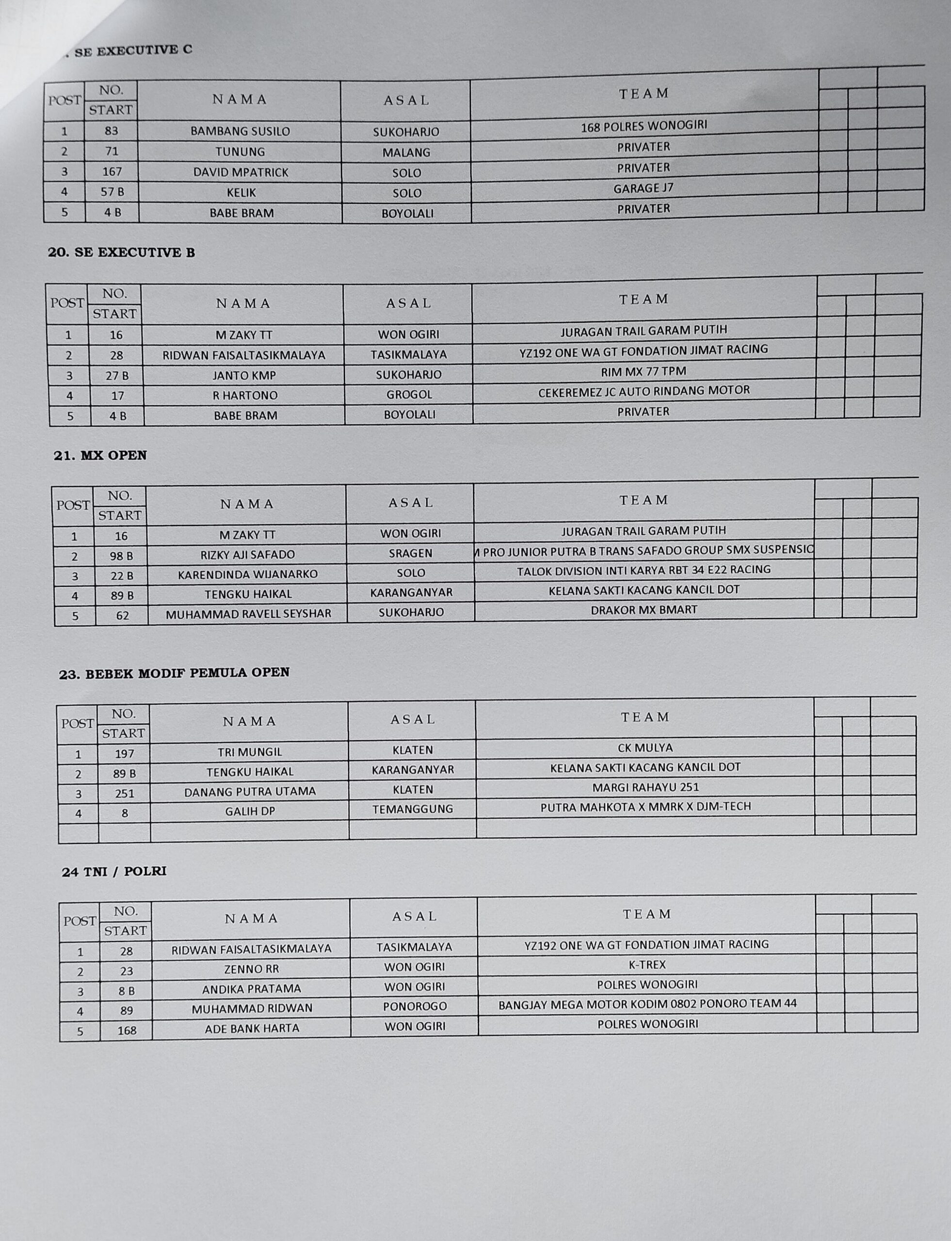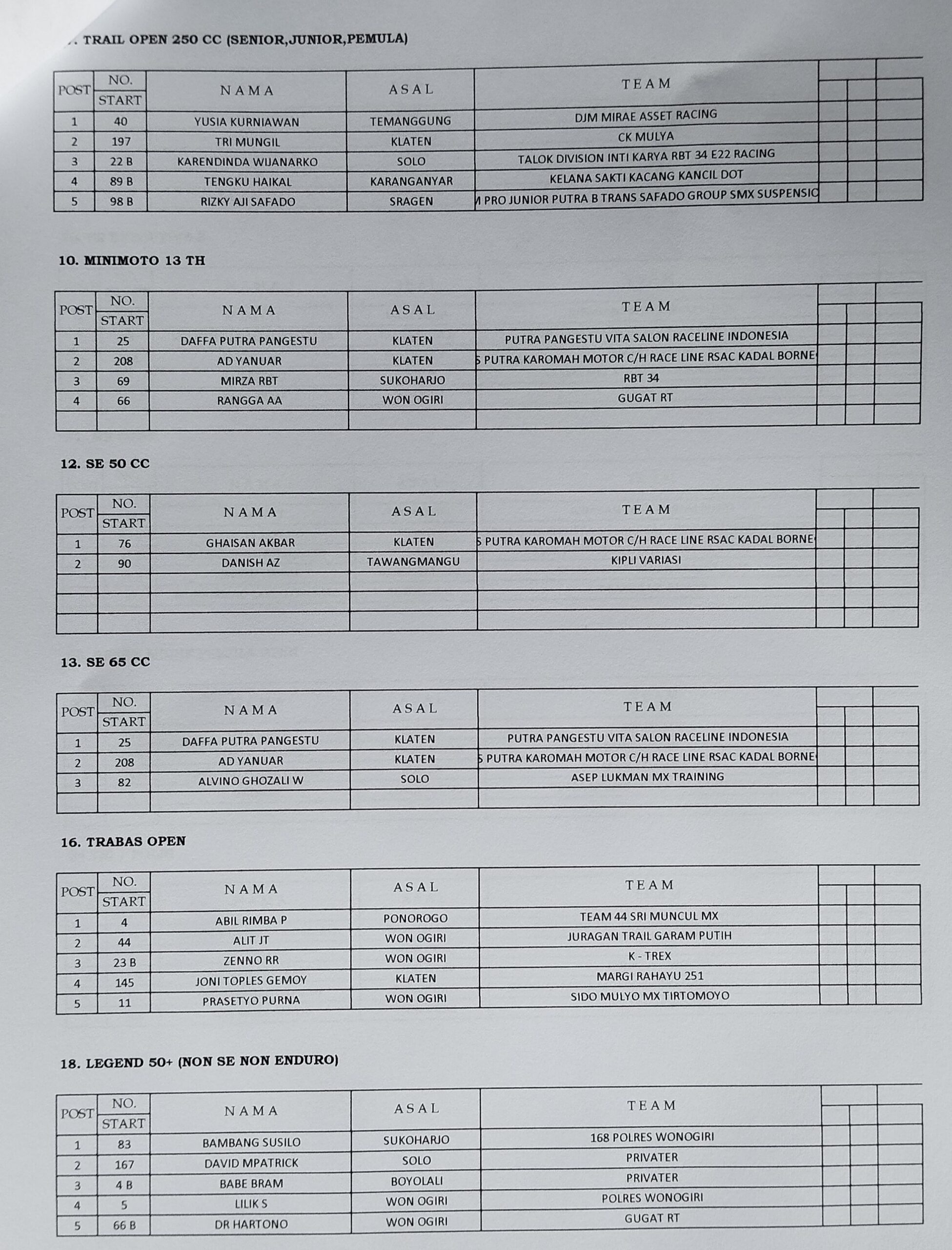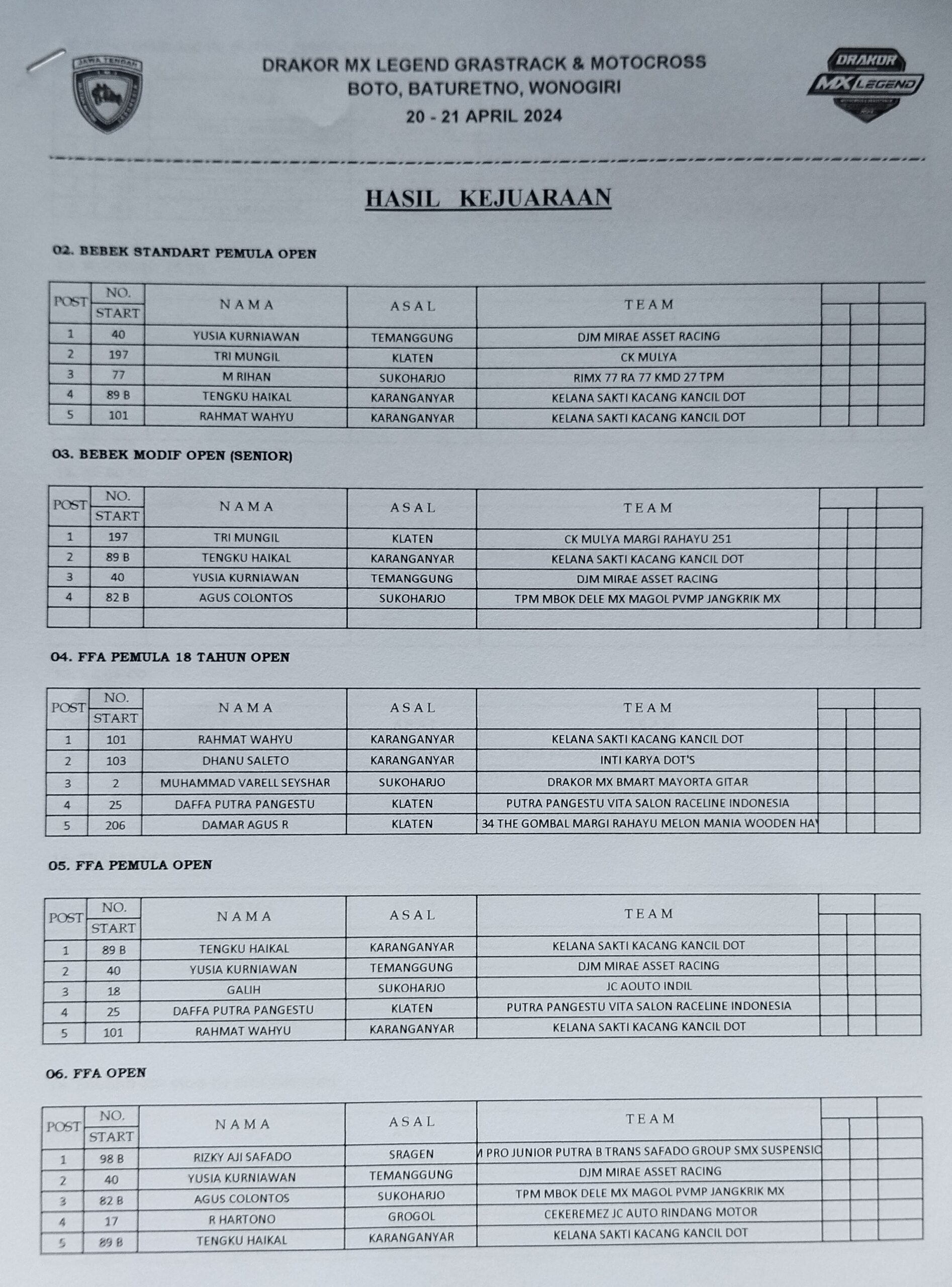 Racing Roda 2GrasstrackMotocrossRace Results Hasil Drakor MX Grasstrack Legend Tempoe Doeloe Wonogiri 2024 Penulis Hafid Hapid - 22 April 2024 0 713 FacebookXPinterestWhatsApp OtomotifZone.com – Wonogiri. Berikut hasil event Drakor MX Grasstrack Legend sirkuit lapangan Gamping, Boto, Baturetno, Wonogiri 20-21 April 2024.