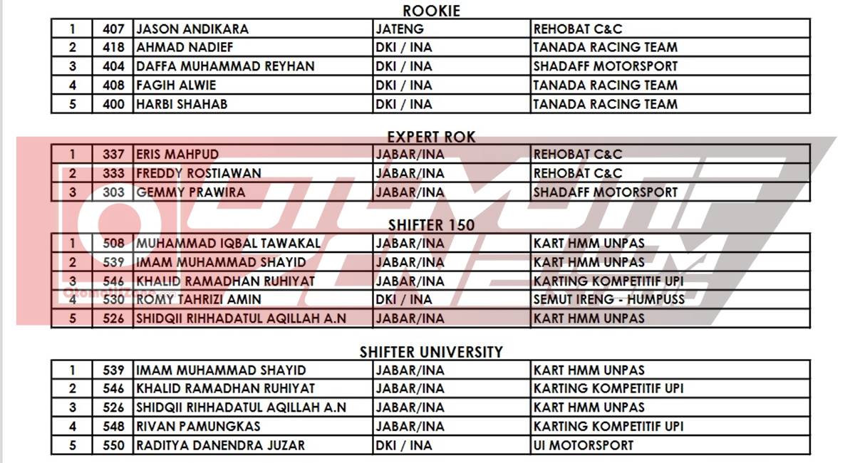Agar lebih jelas, berikut daftar juara di setiap kelasnya: