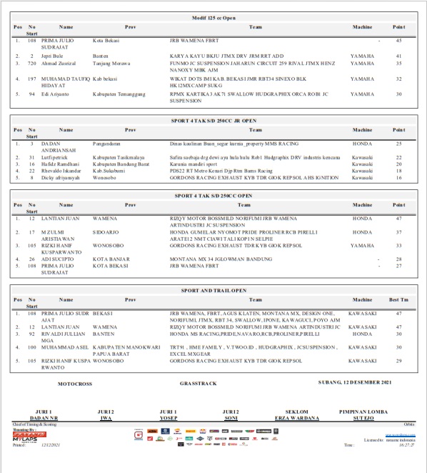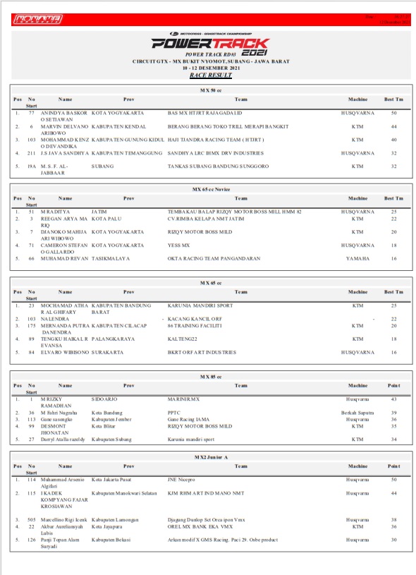 OtomotifZone.com-Subang. Berikut Hasil Seri 3 atau Final Powertrack 2021 yang di selenggarakan pada tanggal 11-12 Desember 2021. Balap penutup ini ada di sirkuit MX Bukit Nyomot, Subang, Jawa Barat. Berikut Hasil race selama dua hari tersebut.