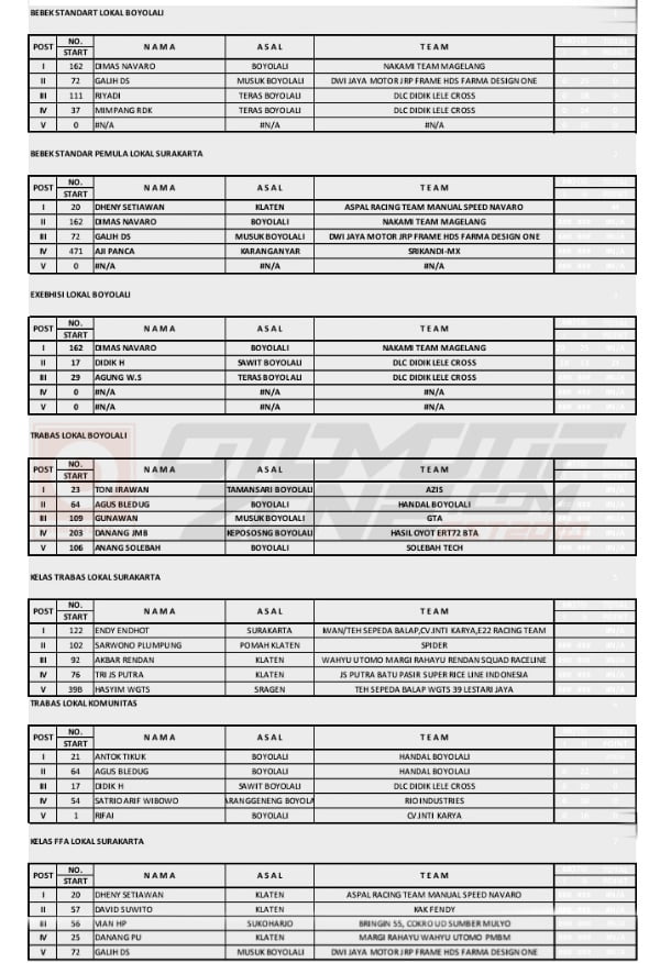 Racing Roda 2GrasstrackRace Results Hasil HUT DPRD Boyolali Grasstrack Motocross 2019 Penulis Hafid Hapid - 15 Desember 2019 0 478 FacebookXPinterestWhatsApp OtomotifZone.com-Boyolali. Berikut hasil juara piala DPRD Boyolali Grasstrack sirkuit Kampung Lele, Sawit, Boyolali 14-15 Desember 2019. Penulis : Hafid | Foto : Hafid