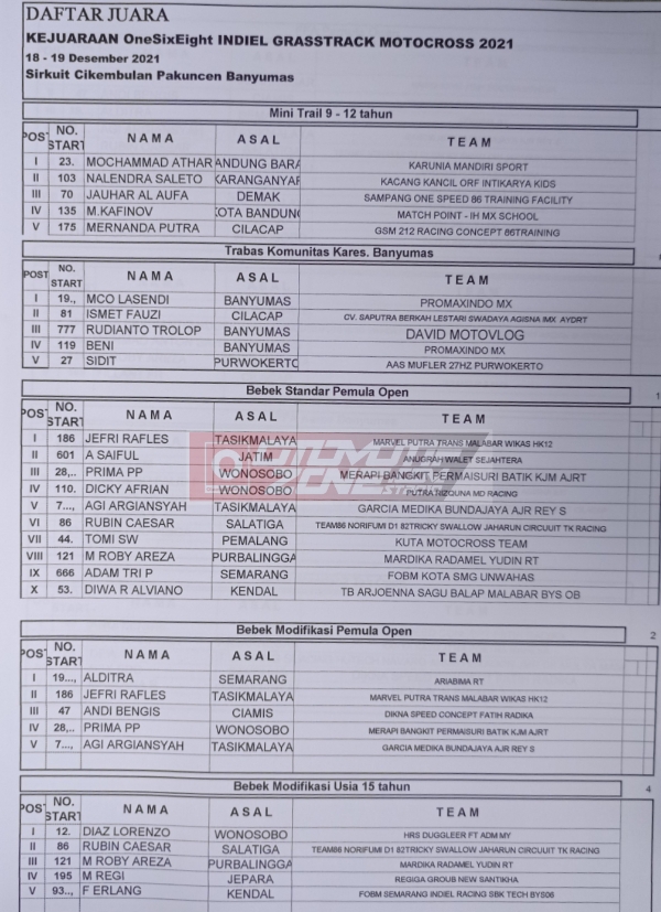 OtomotifZone.com-Banyumas. Balap hari kedua event Indiel Racing Organizer OneSixEight Motocross Grasstrack sirkuit Wijaya Kusuma, Cikembulan, Pakuncen, Banyumas 19 Desember 2021 selesai sudah setelah terbantu dengan cuaca yang sempat kurang bersahabat pada hari Sabtu kemarin. Walau ada beberapa kelas yang terpaksa di batalkan akibat trek yang dirasa bisa menjadi beban di kelas kecil seperti 50cc dan 65cc.