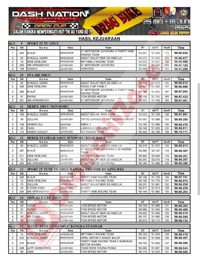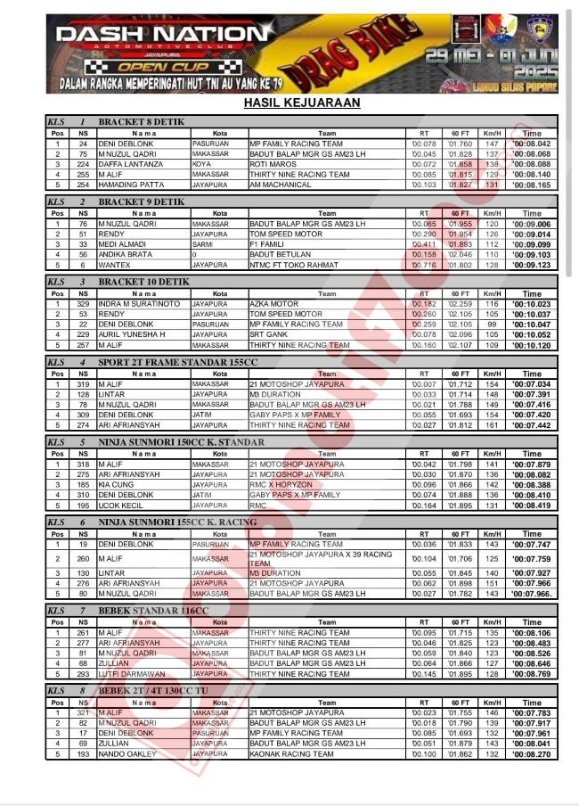 Yang berlangsung hingga Minggu (1/6/2025). Puluhan kelas terlaksanakan, mulai dari kelas bracket, hingga kelas open selalu jadi daya tarik utama persaingan unjuk gigi para pembalap serta tim yang bersaing.
