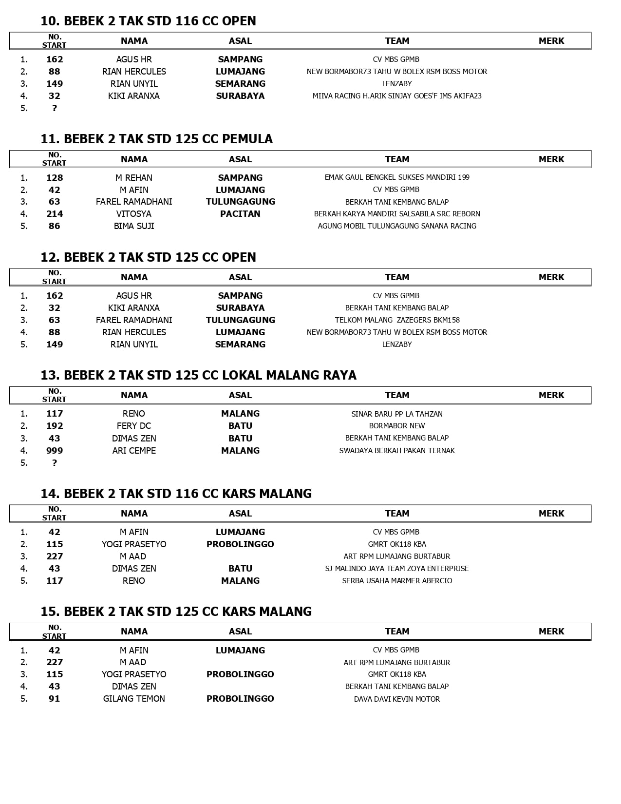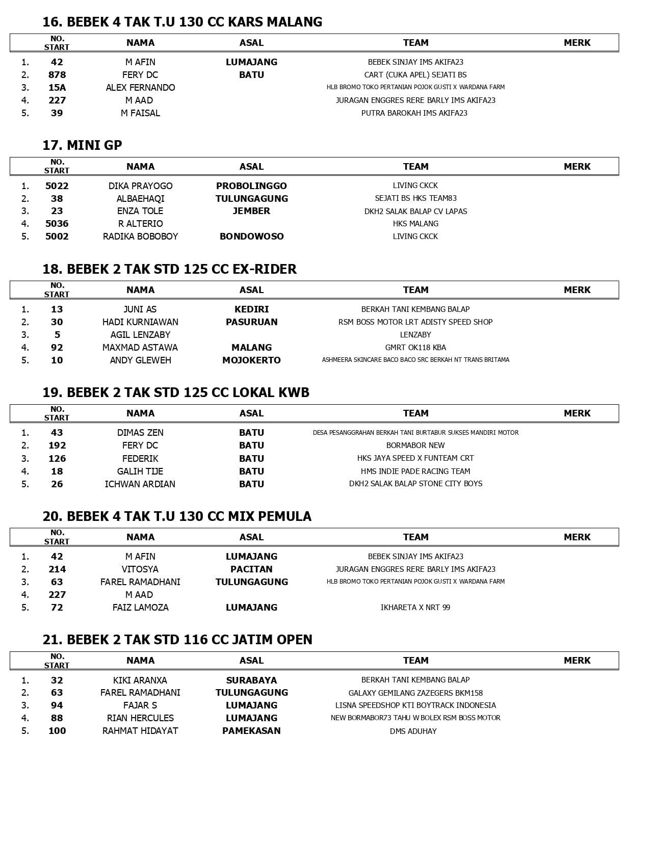 Dihadiri pembalap lokal Jawa Timur, lokasi Batu menjadi tempat favorit hampir semua tim untuk dijadikan sebagai lokasi wisata.