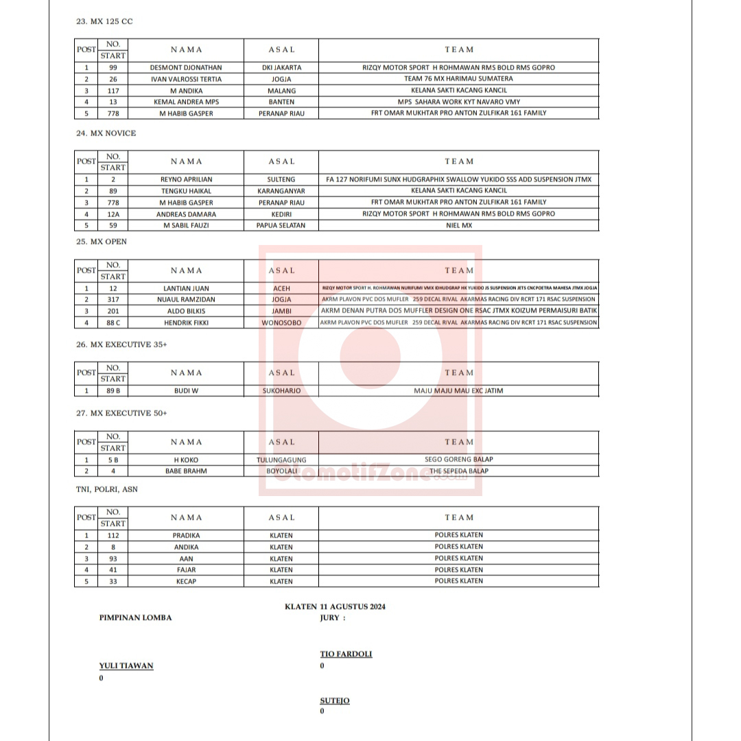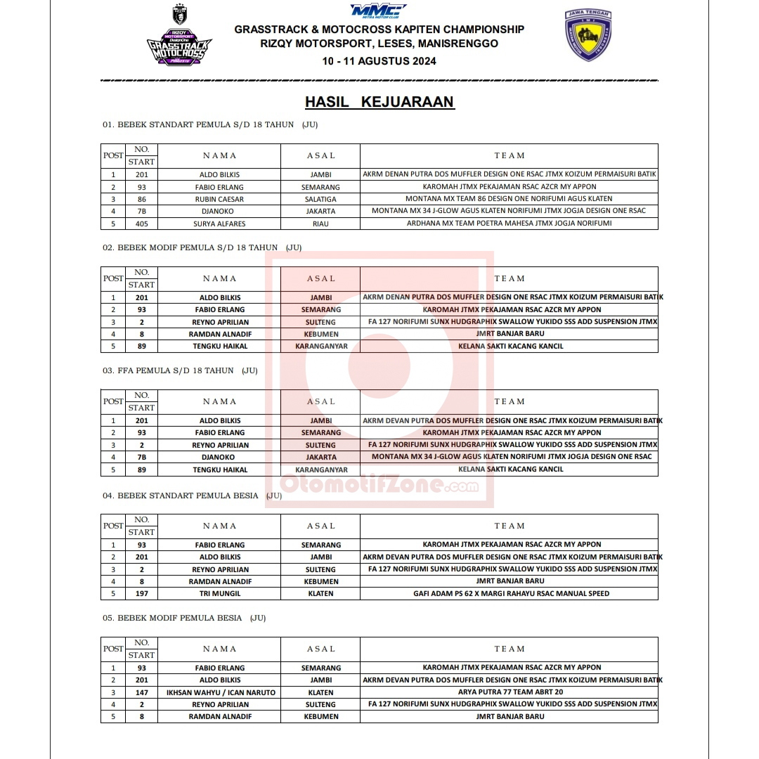 Racing Roda 2GrasstrackMotocrossRace Results Hasil Kapiten Rizqy Motorsports Design One Putra Pangestu Grasstrack Klaten 2024 Penulis Hafid Hapid - 12 Agustus 2024 0 1659 FacebookXPinterestWhatsApp OtomotifZone.com – Klaten. Berikut ini adalah hasil apiten Rizqy Motorsport Design One Putra Pangestu Grasstrack Motocross sirkuit Leses, Manisrenggo Klaten 10-11 Agustus 2024.
