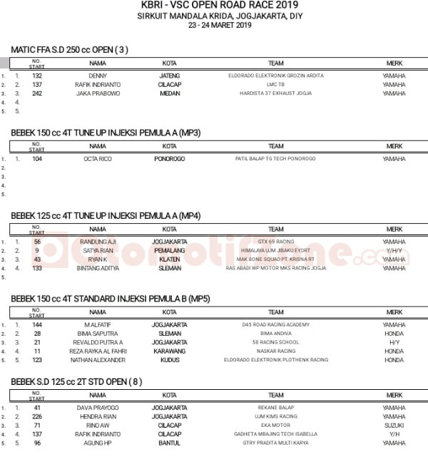 Race ResultsRacing Roda 2Road Race Hasil KBRI VSC Road Race Mandala Krida Jogja 2019 Penulis Hafid Hapid - 24 Maret 2019 0 3647 FacebookXPinterestWhatsApp OtomotifZone.com-Jogja. Berikut hasil KBRI (Keluarga Besar RX-King Indonesia) – VSC Road Racing Championship sirkuit Lap. Parkir Stadion Mandala Krida Jogjakarta 24 Maret 2019. Penulis : Hafid | Foto : Hafid