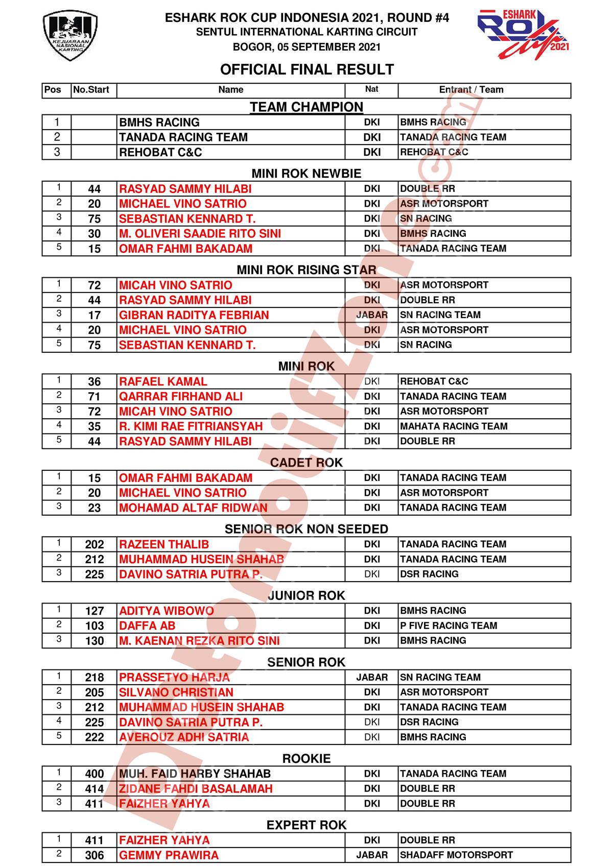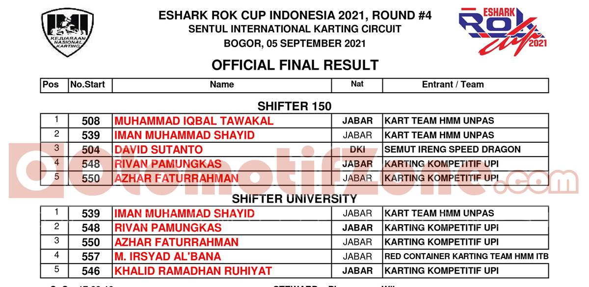 Pastinya pebalap terbaik keluar pada putaran 4 ini. Dan agar lebih jelas, berikut hasil lengkap juara Eshark Rok Cup putaran 4: