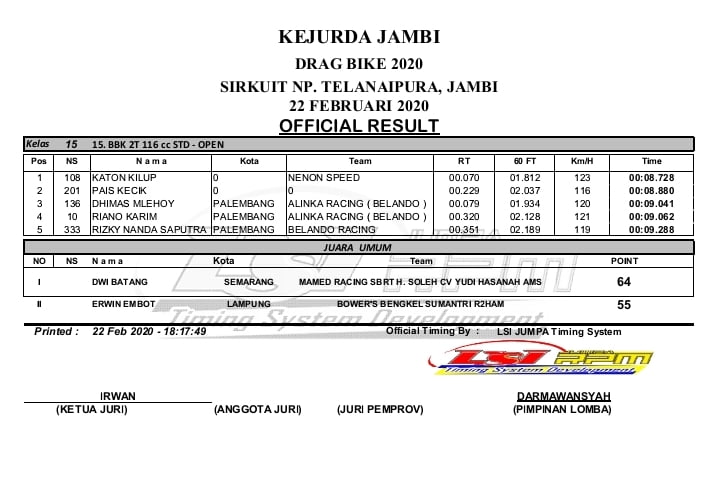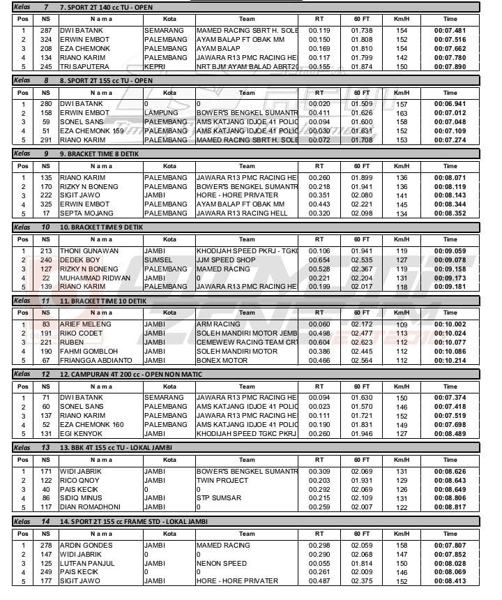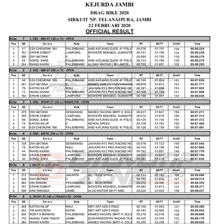 Racing Roda 2Drag Bike Hasil Kejurda Drag Bike sirkuit NP. Telanaipura Jambi 2020 Penulis otomotifzone - 24 Februari 2020 0 425 FacebookXPinterestWhatsApp OtomotifZone.com-Jambi. Berikut hasil Kejurda Drag Bike Jambi di sirkuit NP. Telanaipura, Jambi 22 Februari 2020. Penulis : Okky | Foto : Okky
