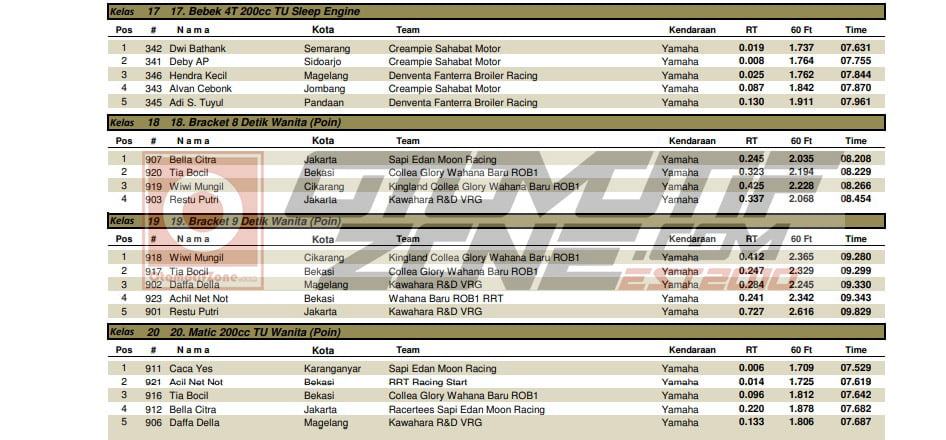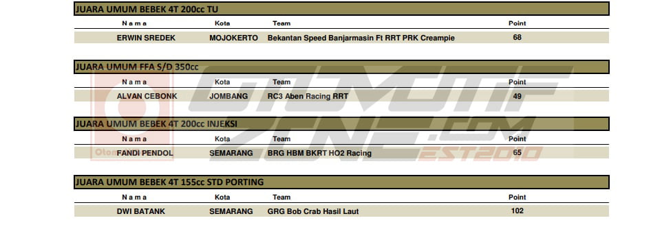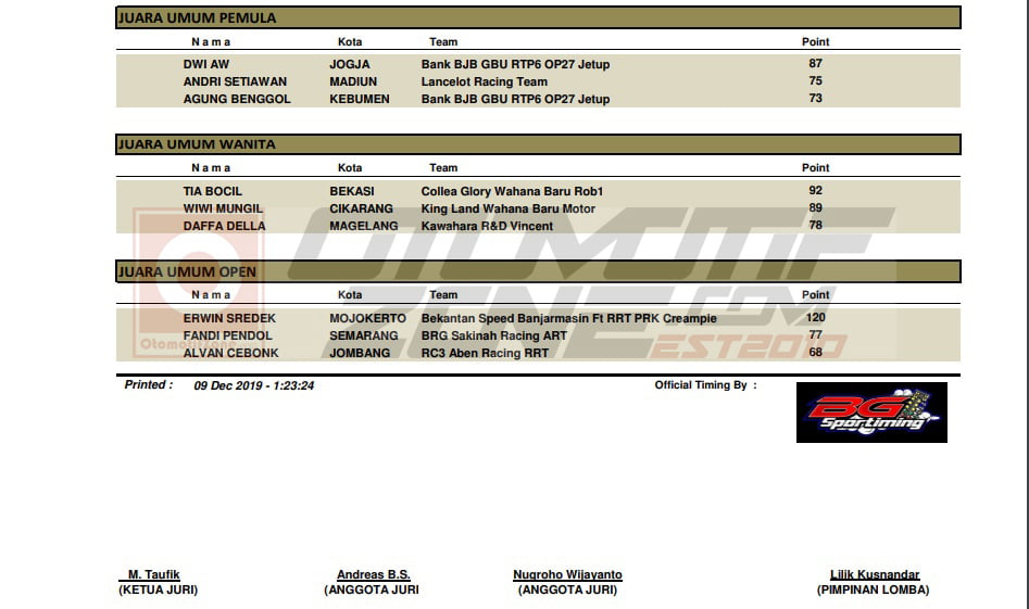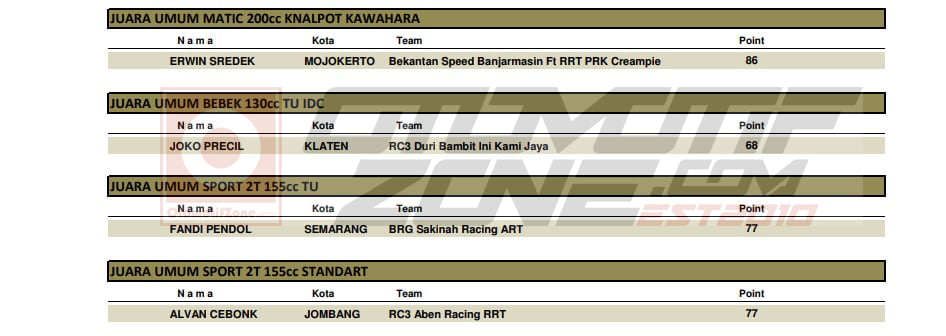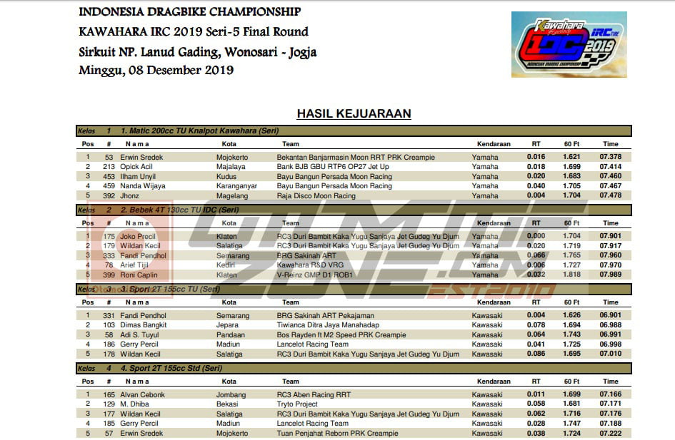 Berikut adalah hasil keseluruhan dari grand final Kawahara IRC IDC 2019 :