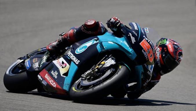 OtomotifZone.com – Bandung. Fabio Quartararo, pembalap tim Petronas Yamaha SRT berhasil raih pole position setelah menjadi yang tercepat di ajang kualifikasi MotoGP Le Mans, Bugatti, Prancis 2020, Sabtu (10/10). Catatan waktu yang telah di rengkuh Fabio Quartararo adalah 1 menit 31,315 detik. Pada posisi kedua di duduki oleh Jack Miller dengan torehkan waktu 1 menit 31,537 detik atau selisih 0,222 dari rider berjuluk El Diablo tersebut.