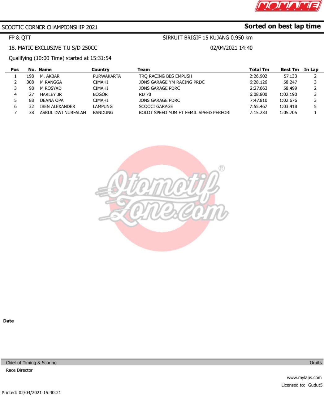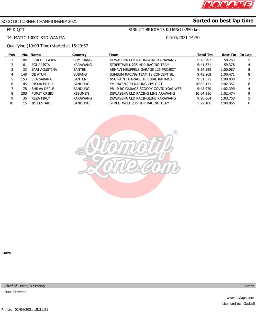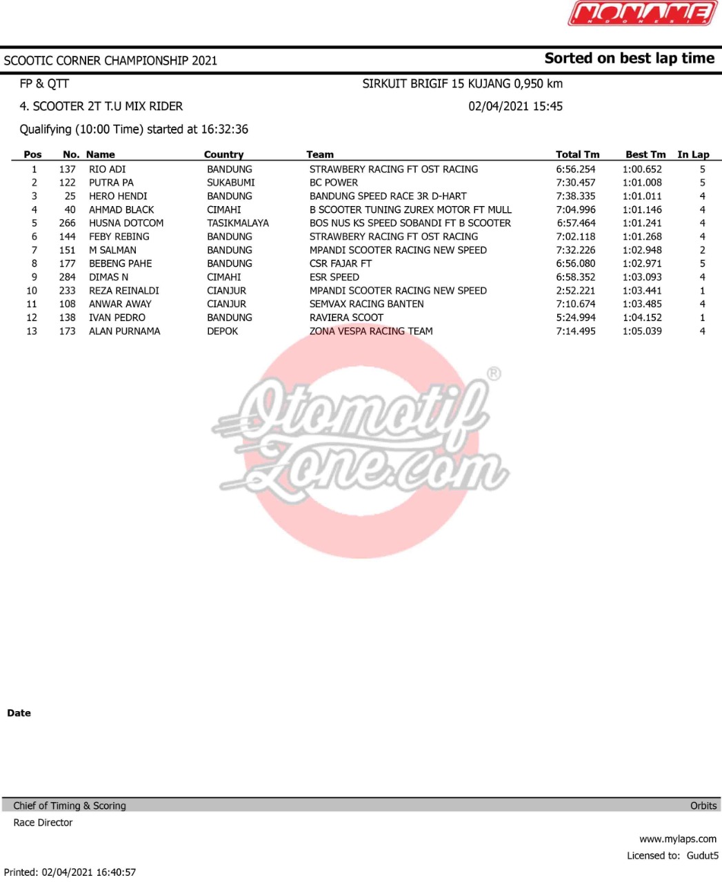 OtomotifZone.com – Bandung. Ramai dan panas gelaran Scootic Corner Championship 2021 yang diselenggarakan (2-3/3/ 21) di Sirkuit Brigif Kujang II Cimahi, Bandung. Pada gelaran ini tembus 450 starter. Pada gelaran ini beberapa pebalap ternama ikut serta dalam pertarungan ini.