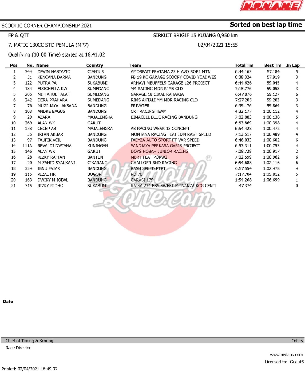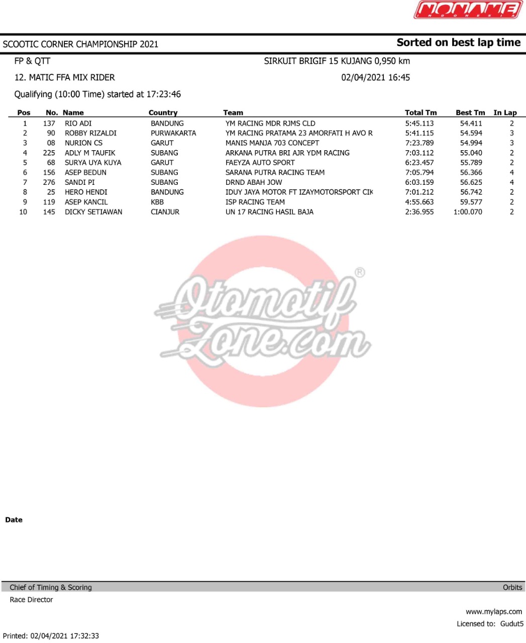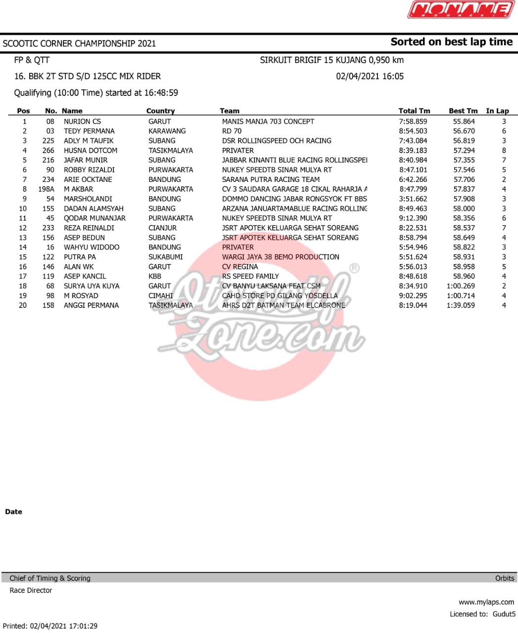 OtomotifZone.com – Bandung. Ramai dan panas gelaran Scootic Corner Championship 2021 yang diselenggarakan (2-3/3/ 21) di Sirkuit Brigif Kujang II Cimahi, Bandung. Pada gelaran ini tembus 450 starter. Pada gelaran ini beberapa pebalap ternama ikut serta dalam pertarungan ini.