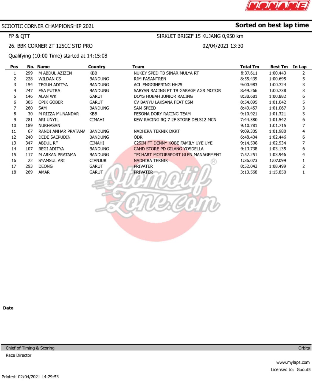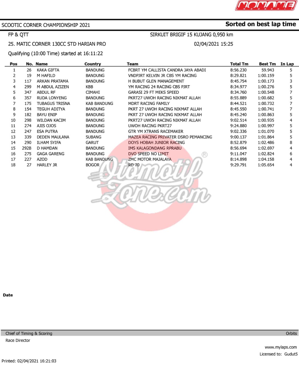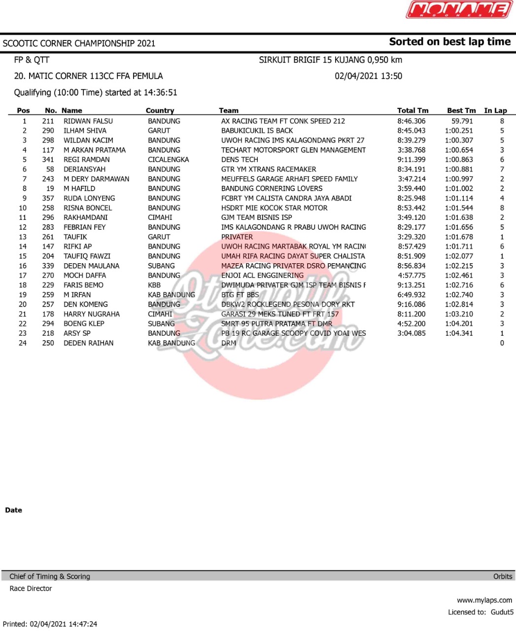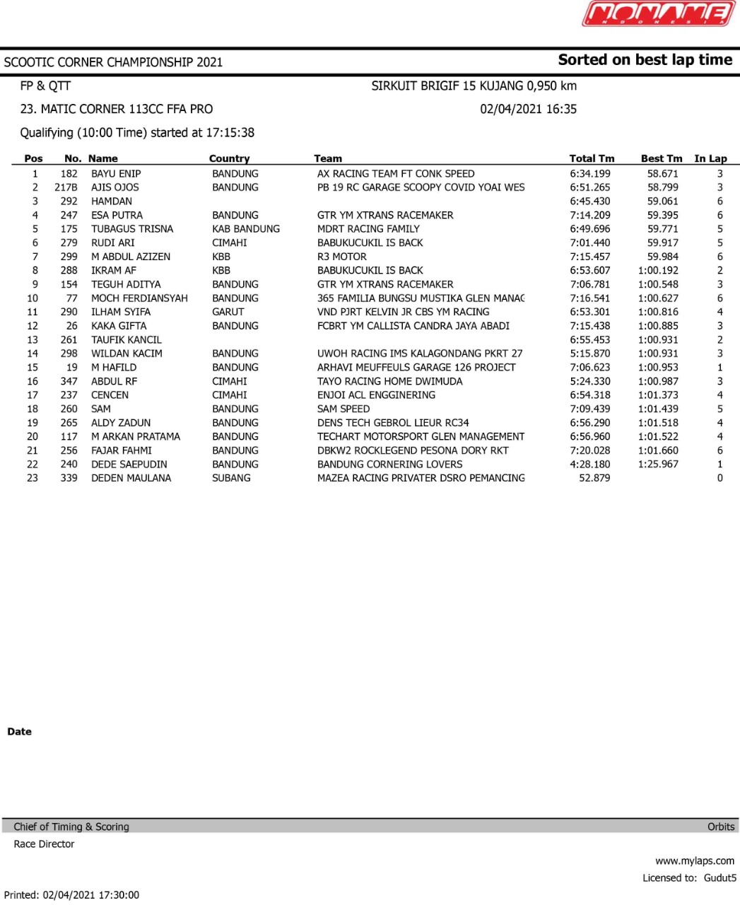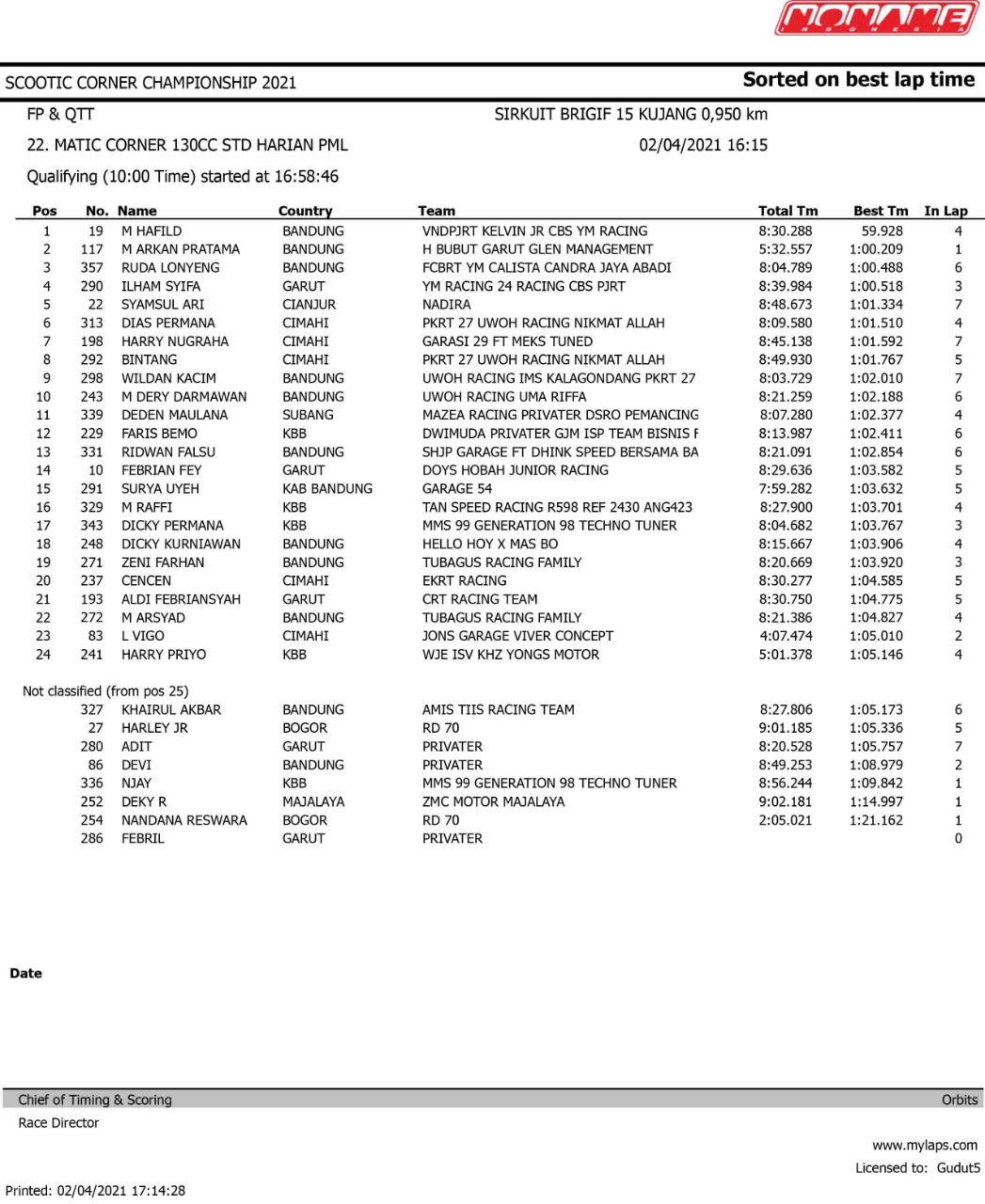 Tetap mematuhi protokol kesehatan, gelaran ini dijalankan dengan sukses pada hari pertama. Meski sedang menjalankan sesi kualifikasi tapi para pebalap sudah adu skill untuk meraih hasil baik. Mereka saling adu kecepatan untuk memastikan posisi start saat race nanti. Agar lebih lengkap, berikut hasil kualifikasinya.