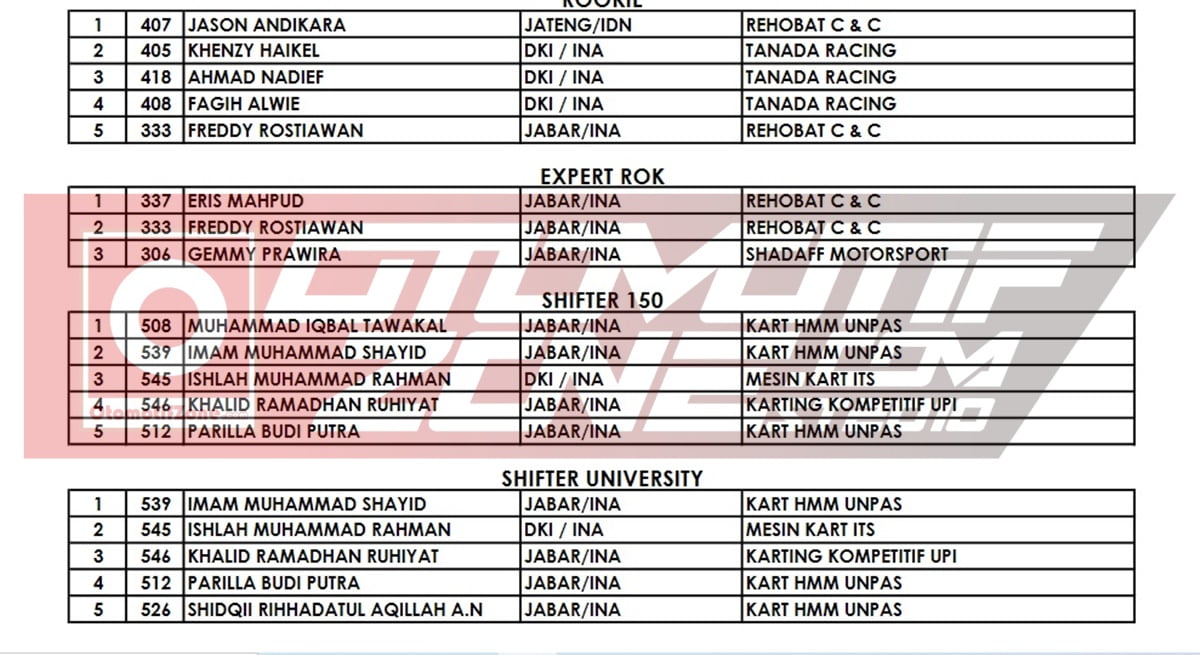 Lanjut ke balapan, pada pertarungan disetiap kelas sangat seru. Karena mereka mungkin sudah haus akan balapan. Pebalap terbaik keluar sebagai juaranya: