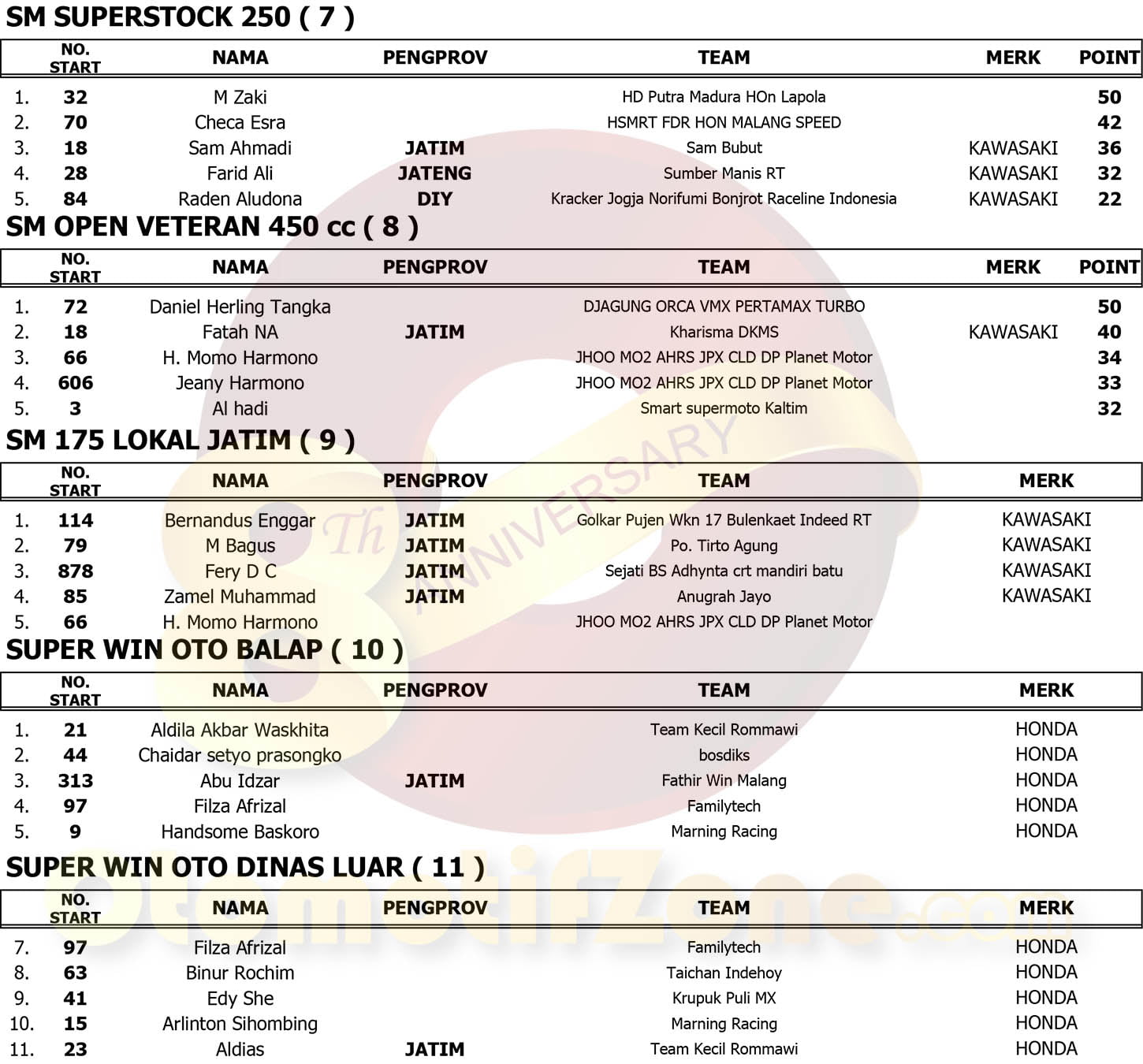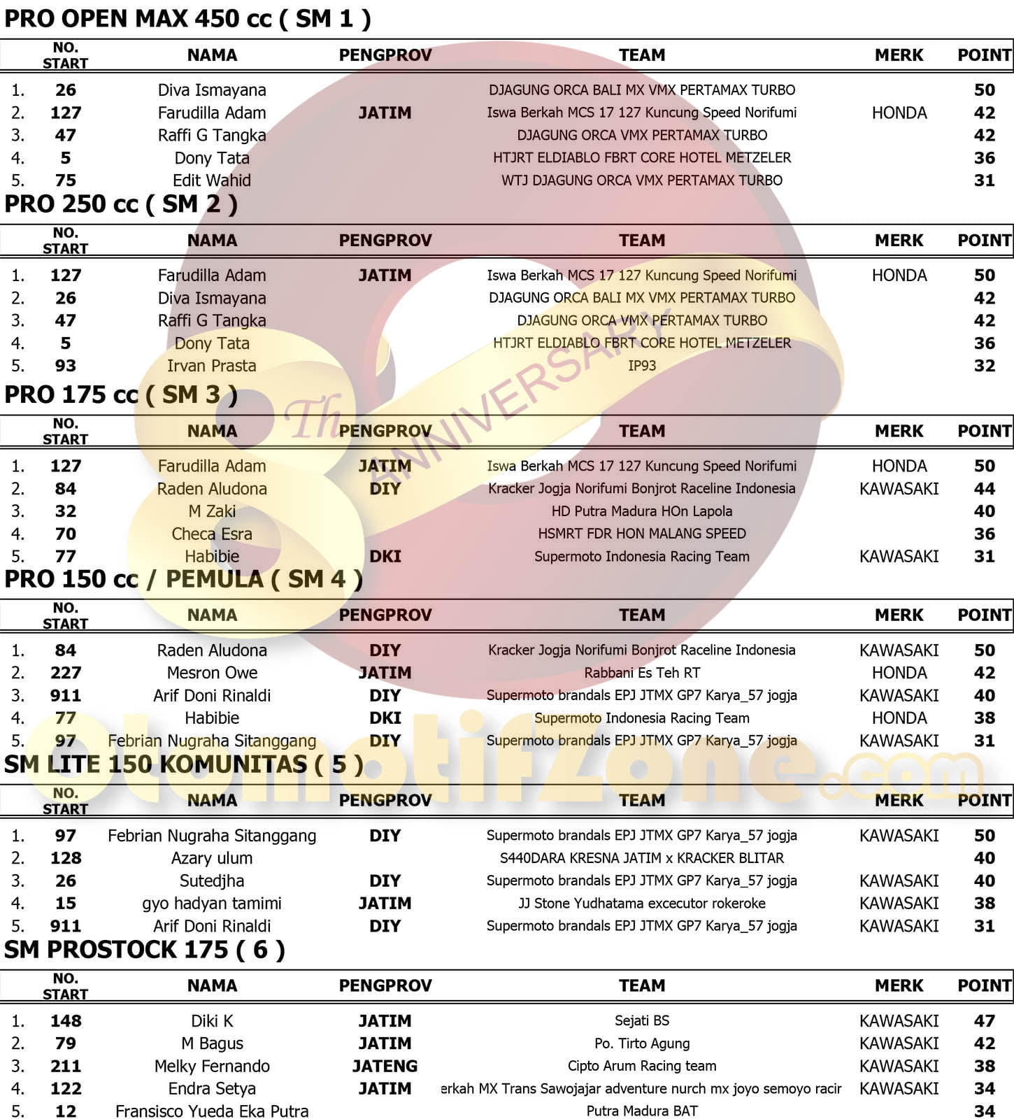 Racing Roda 2MotocrossRace ResultsSupermoto Hasil Lomba 76 – INDONESIA SUPERMOTO CHAMPIONSHIP 2018 – 4th Round MALANG Penulis otomotifzone - 15 Oktober 2018 0 4201 FacebookXPinterestWhatsApp Podium Total Poin SM1 OtomotifZone.com – Malang. Berikut Hasil Lomba lengkap 76 Indonesia Supermoto Championship 2018 seri 4 Final. Dihelat di pelataran Stadion Kanjuruhan, Kepanjen kabupaten Malang. 13-14/10 2018. Penulis dan Foto : DIKi