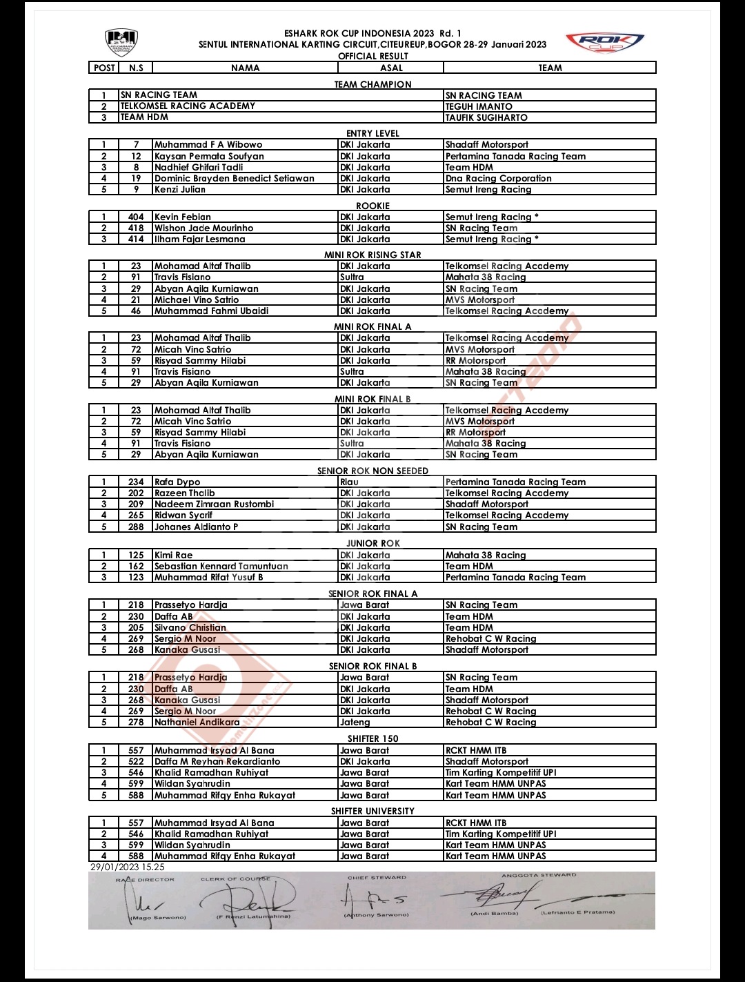 OtomotifZone.com – Jakarta. Gelaran Eshark Rok Cup Putaran 1 tahun 2023 berhasil diselenggarakan (29/1/23) di Sirkuit Internasional Karting Sentul, Bogor, Jawa Barat. Pada gelaran tahun 2023 banyak warna baru dan skema baru. Banyak pebalap pebalap baru dan pebalap lama yang masih aktif mengejar prestasi diajang bergengsi ini.