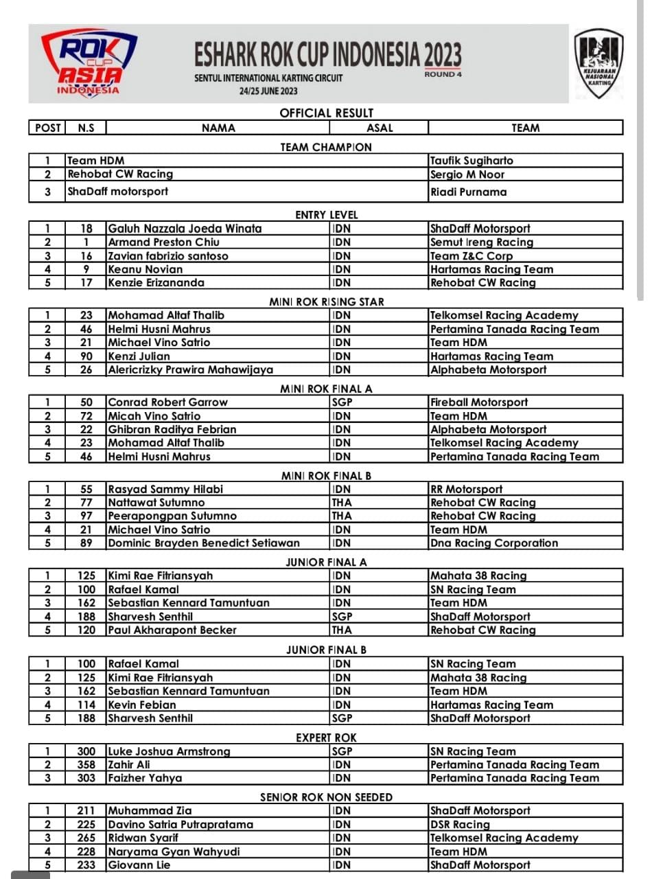 OtomotifZone.com – Jakarta. Usai sudah gelaran Eshark Rok Cup Seri 4 yang berlangsung (25/6/23) di Sirkuit Internasional Karting Sentul, Bogor Jawa Barat. Banyak muka lama kembali bermunculan. Ini membuat aroma persaingan tambah memanas. Terlebih sebelum mereka hadir juga persaingan tahun 2023 sudah memanas. Ditambah lagi pebalap pebalap yang absen di seri sebelumnya hadir untuk menjadi juara.