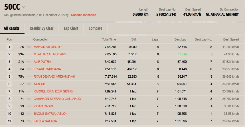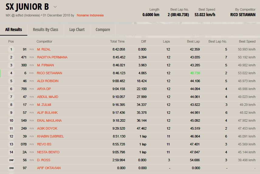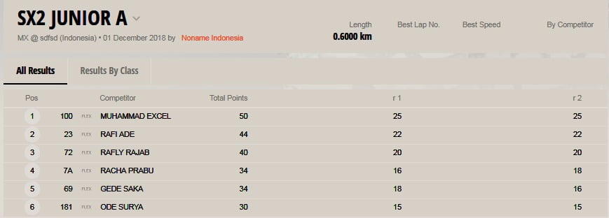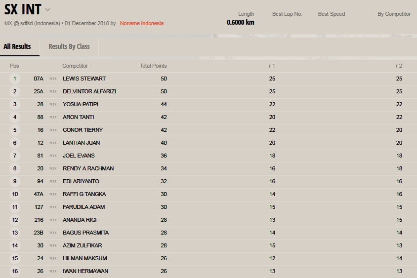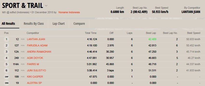 OtomotifZone.com – Kediri. Berikut ini adalah hasil lomba Final Kratingdaeng Indonesian Supercross International Championship 2018 yang berlangsung di sirkuit Supercross Gunung Klotok Brigif Mekanis 16/Wira Yudha Mojokerto, Kediri, Jawa Timur, Sabtu (1/12).