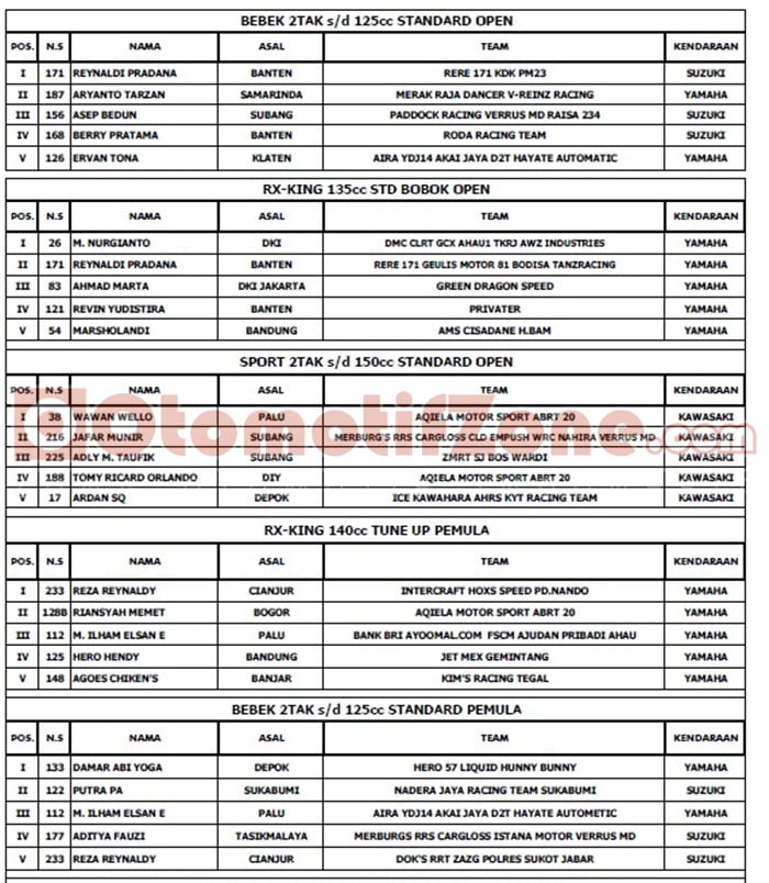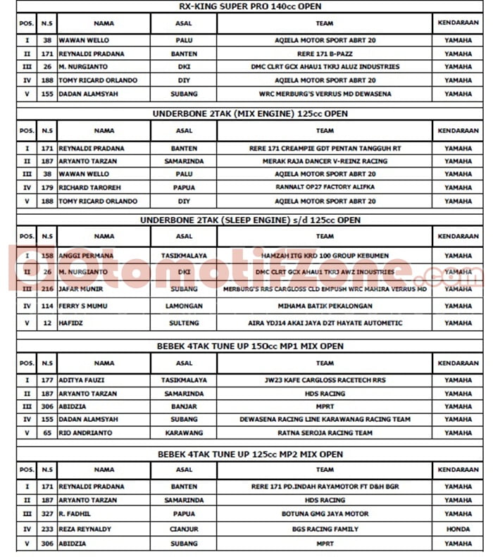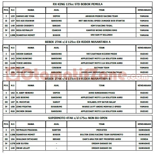 Konsep baru menjadi salah satu sorotan utama. Kelas Super Pro dan Underbone menjadi sorotan utama. Sebab kelas ini menjadi kelas yang dinanti nanti oleh para penonton. Sebab kelas ini sangat sengit persaingannya. Para pembalap saling unjuk gigi untuk menjadi yang terbaik di setiap kelasnya. Pembalap terbaik keluar sebagai juaranya. Berikut Hasil lomba INDOCLUB putaran 1 Sentul 2019: