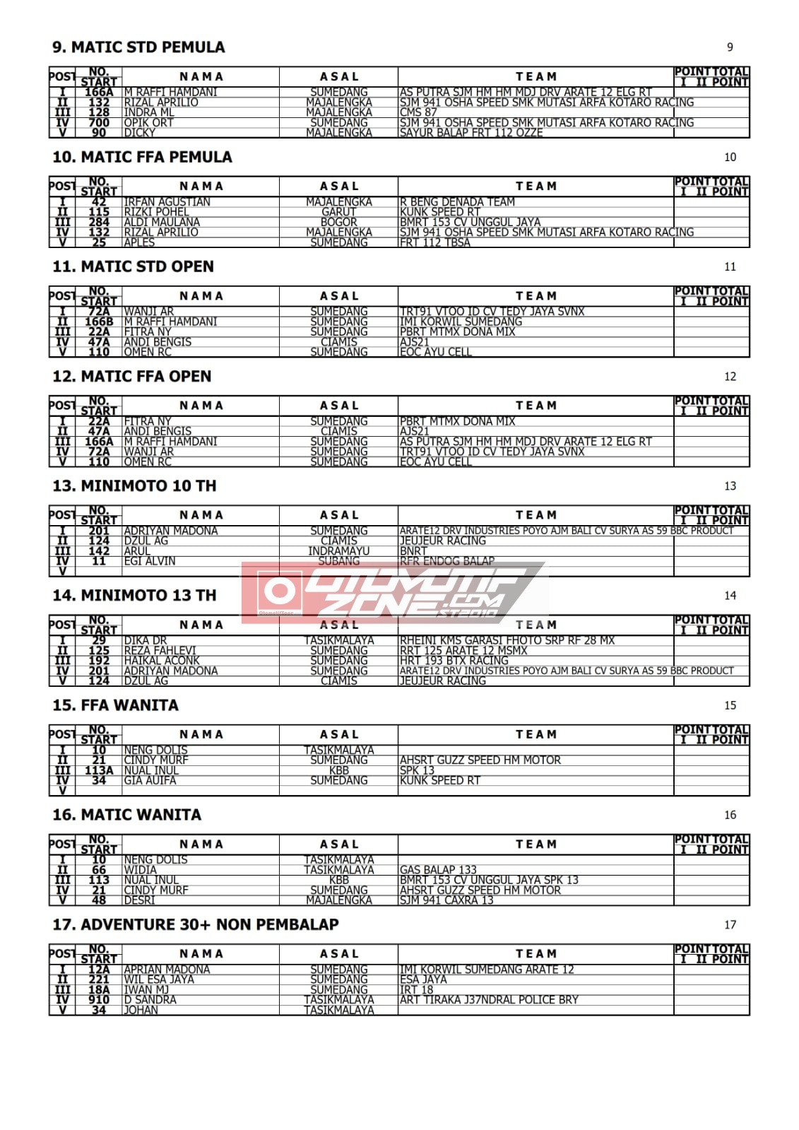 Berikut adalah hasil lomba selengkapnya :