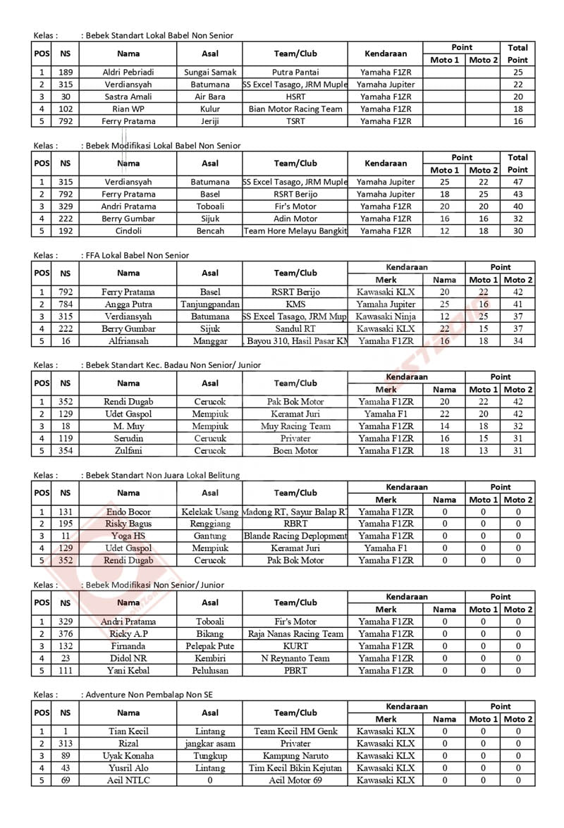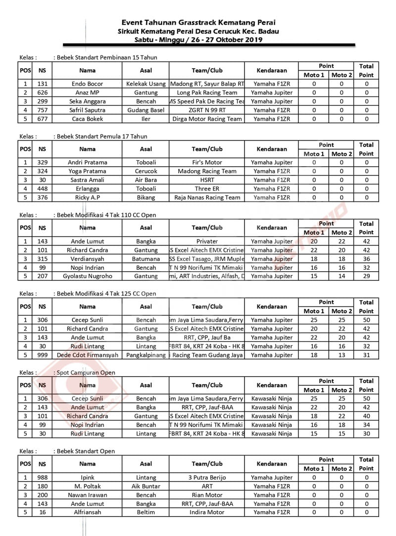 OtomotifZone.com – Babel. Berikut ini adalah Hasil Lomba Event Tahunan Grasstrack Kematang Perai Open 2019, Sirkuit Kematang Perai , Cerucuk Belitung – Babel , 26-27 Oktober 2019