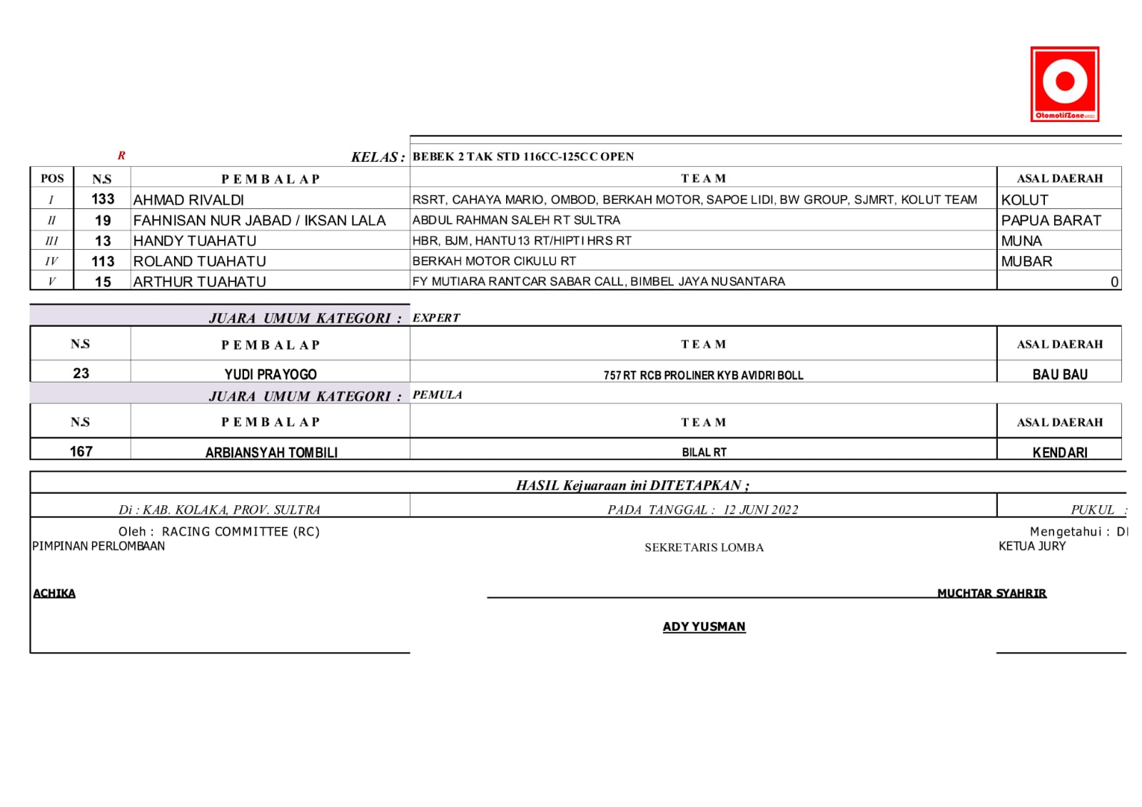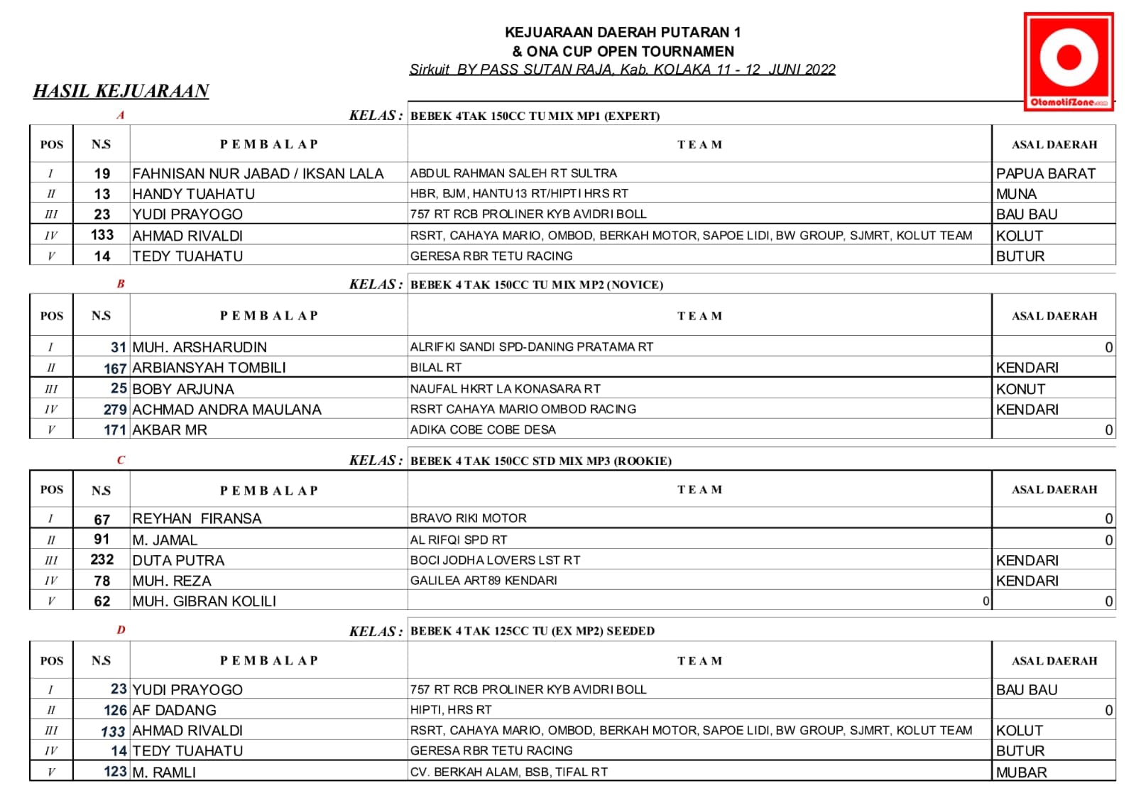 OtomotifZone.com-Kolaka. Jalannya race dengan variasi hujan dan panas, Kejurda Road Race IMI Sulawesi Tenggara seri 1& Ona Cup Open Tournamen 2022 sukses digelar disirkuit non permanen By pass Sutan Raja pantai Mandra kota Kolaka Sulawesi Tenggara berlangsung sukses Sabtu-Minggu, 11-12 Juni 2022.