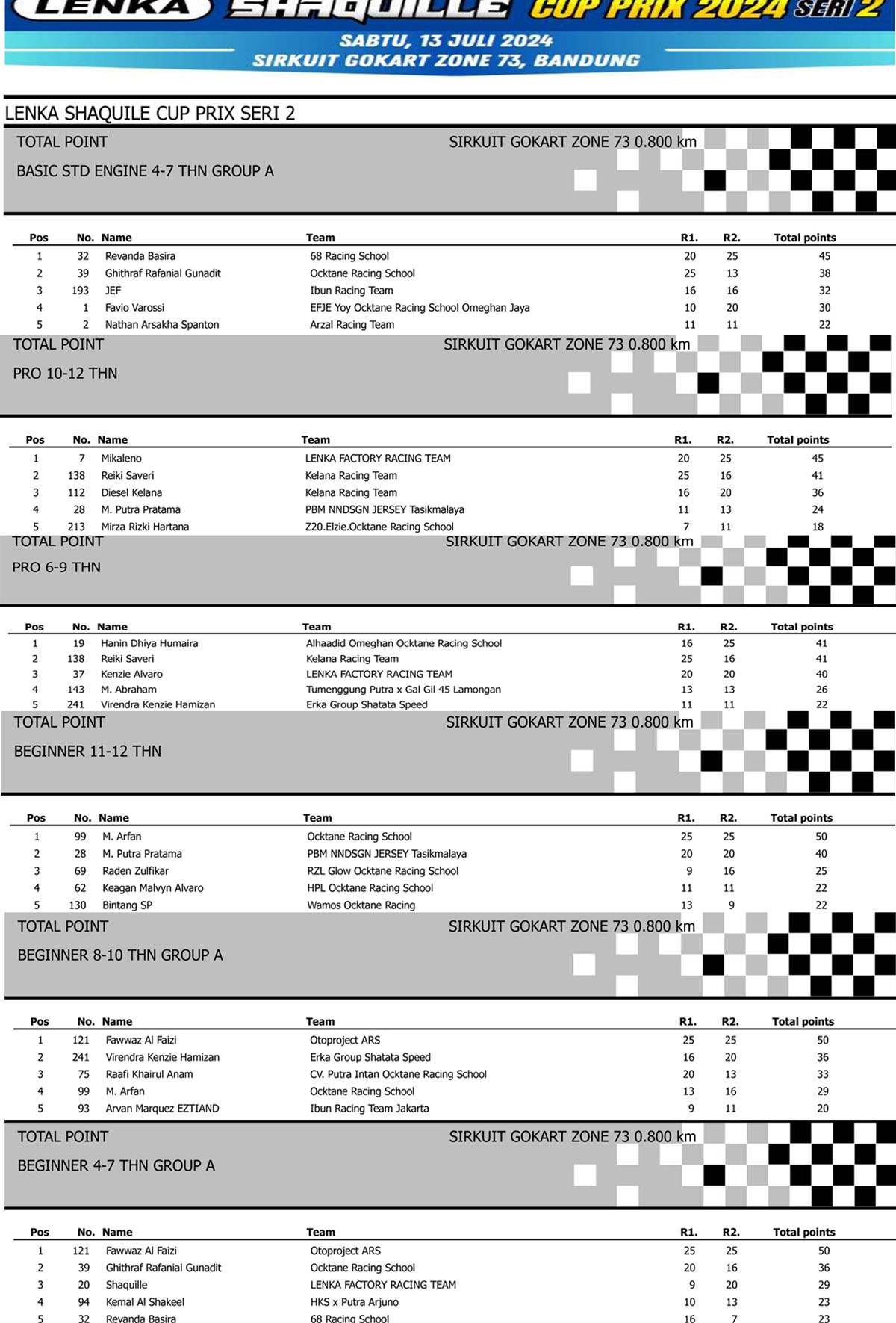 OtomotifZone.com-Bandung. Pembibitan pembalap belia dimulai dari sini. Lenka salah brand motor kate menggelar event berseri tahun ini, dan putaran 2 digelar Sabtu, 13 Juli 2024 di Sirkuit Gokart Zone 73 Ujung Berung Bandung dan berikut hasil lombanya :