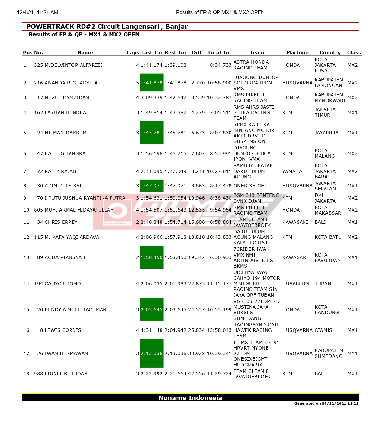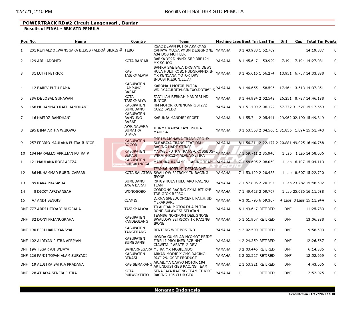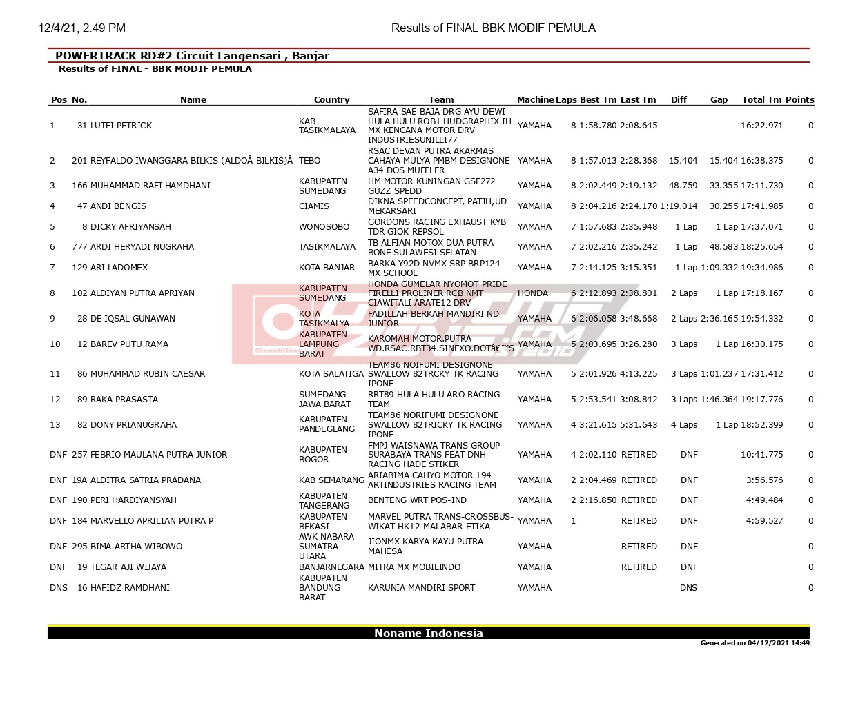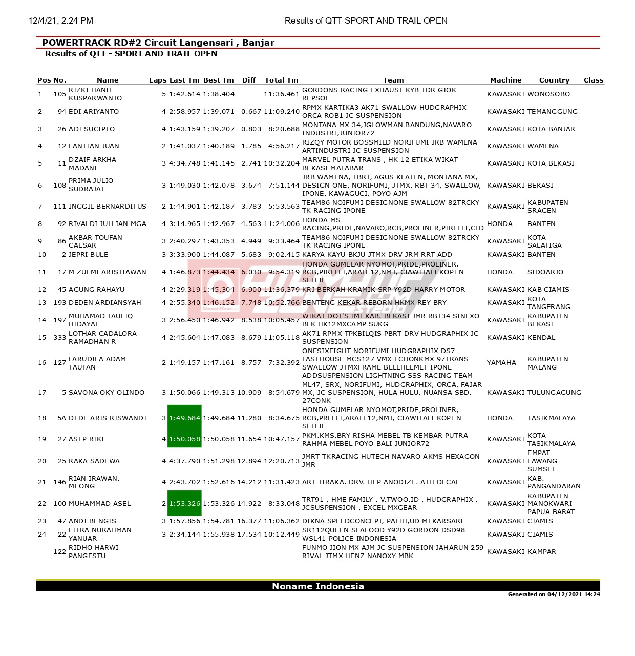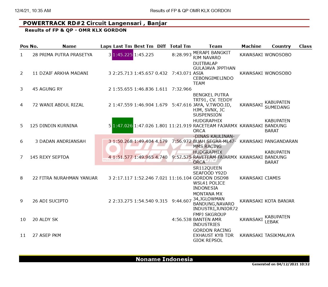 OtomotifZone.com – Banjar. Dari hasil lomba hari Sabtu Powertrack Seri 2 2021 di sirkuit Gelora Banjar Patroman, Kota Banjar, Jawa Barat, (4/12), kondisi lintasan yang basah dan berlumpur membuat peta persaingan antar pembalap jadi terasa berat.