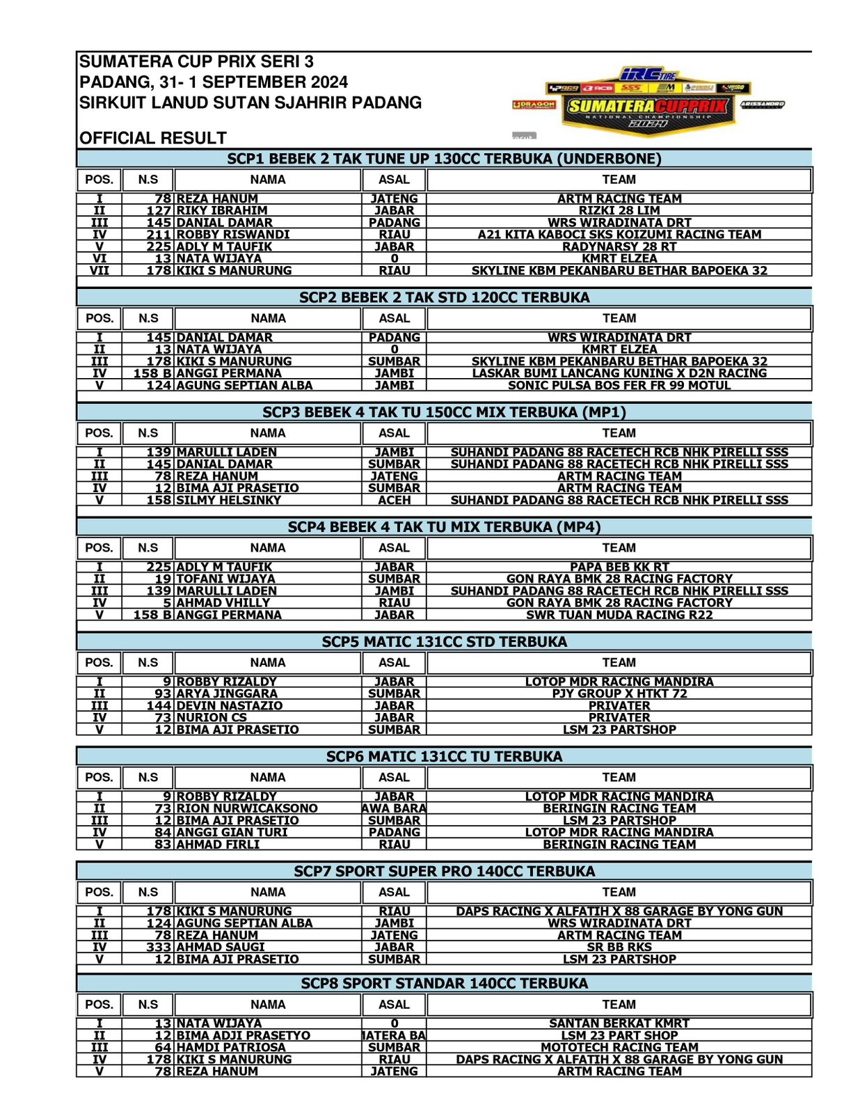 OtomotifZone.com-Padang. Tanpa terasa perjalanan event Sumatera Cup Prix 2024 sudah memasuki putaran 3, dan Sirkuit NP Lanud TNI AU Tabing kota Padang Sumatera Barat didaulat menjadi venue penyelenggaraan event setingkat kejurnas milik produk orang Jambi ini digelar Sabtu-Minggu, 31 Agustus-1 September 2024.