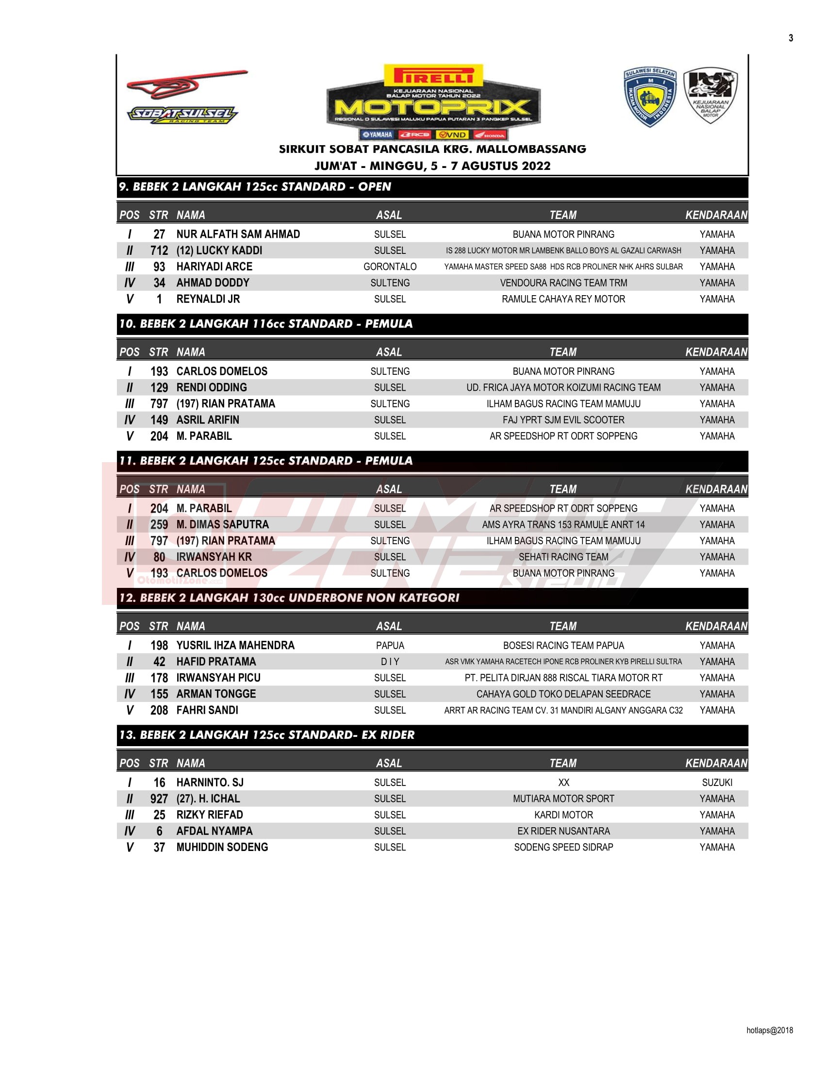 Pada gelaran Kejurnas Motoprix Region D putaran 3 kali ini memang tiga kelas Kejurnas menjadi tujuan utama sebagai tontonan. Tapi kalian jangan salah karena kelas kelas pendukung menjadi tontonan menarik yang sayang untuk dilewatkan. Karena ada beberapa pebalap ternama yang ikut bersaing pada gelaran ini.