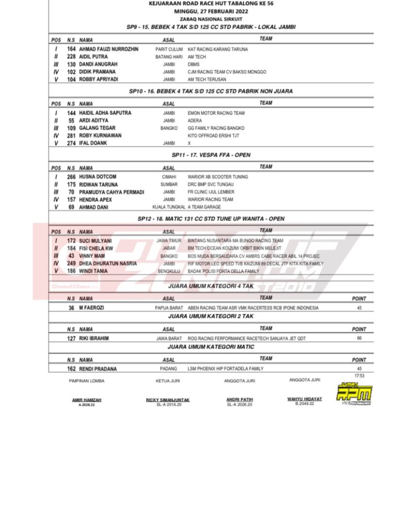 Nah Otonozer langsung aja kita yuk.Beriku adalah Hasil Lomba dari H.PUTRA969 RCB SSS SHIJIRO Sumatera Cup Prix 2022 Round 1