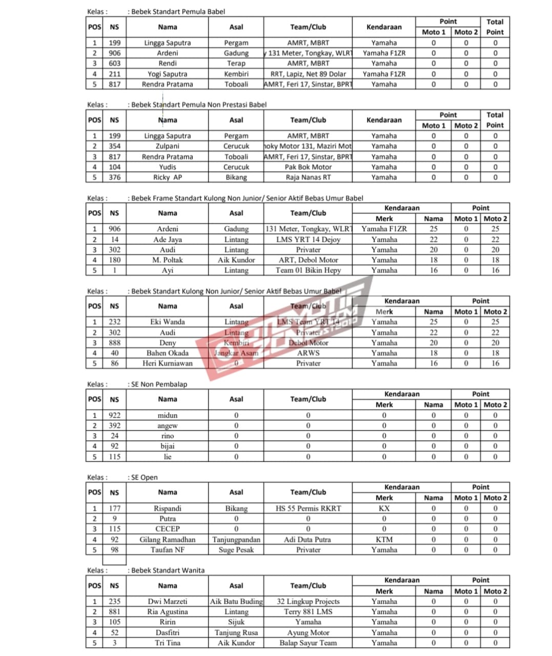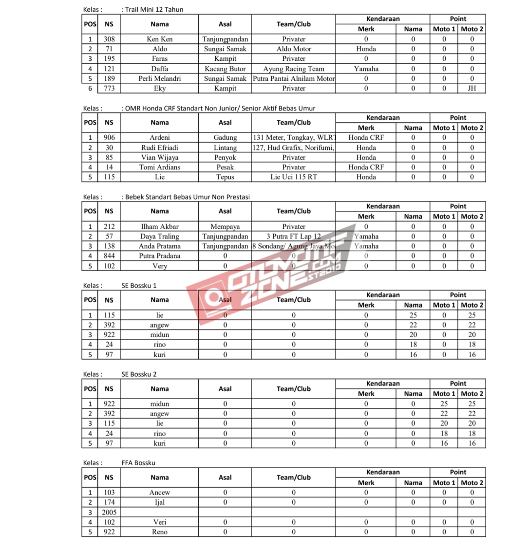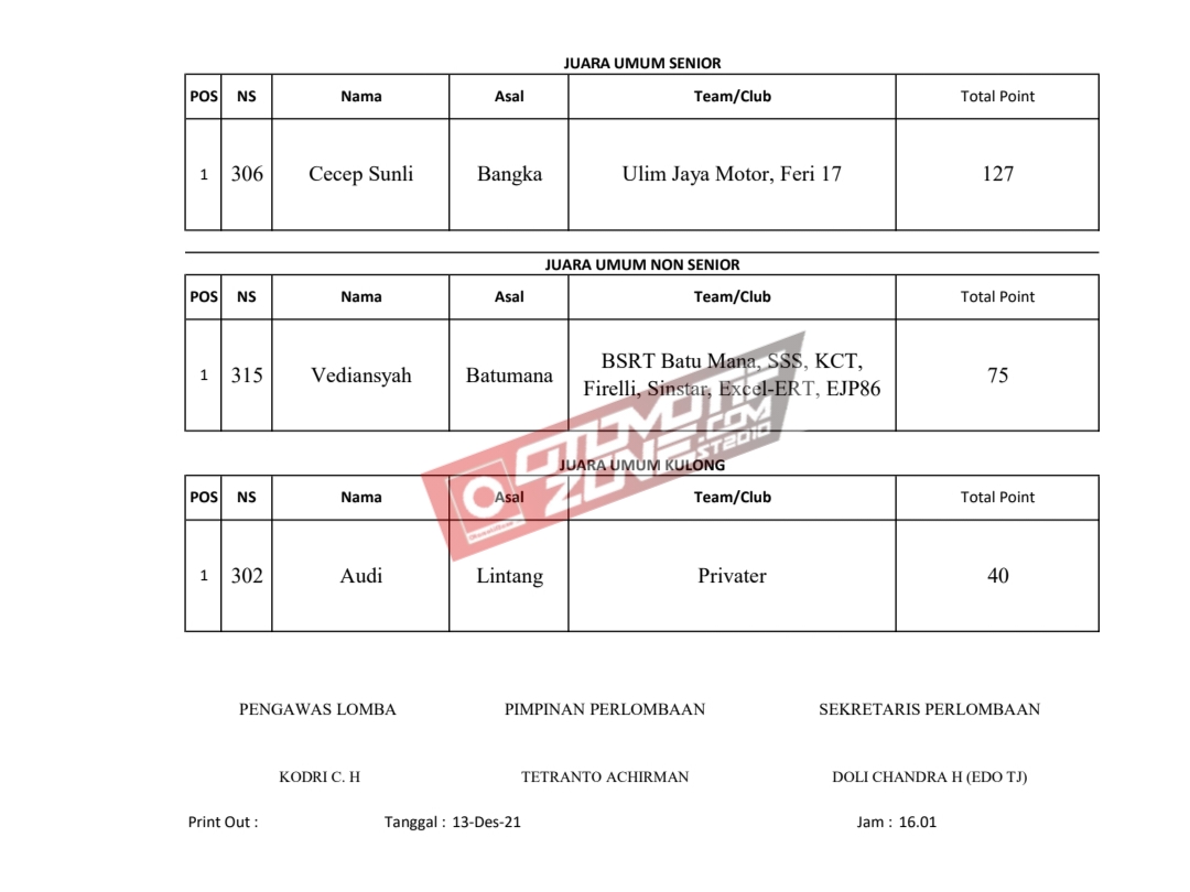 Sedangkan di kategori Juara Umum Kulong diraih oleh Audi, pembalap privateer asal Lintang, dengan torehan nilai 40 poin.